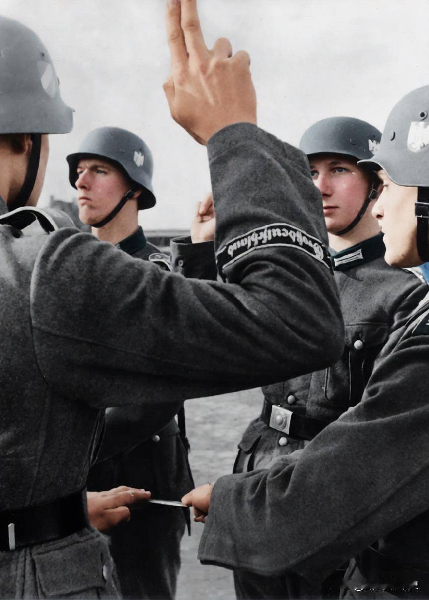我们通常理解的军人誓词,是保家卫国的神圣承诺。但二战德国国防军的誓词,却让人感到一种刺骨的寒意。它最大的问题,就是军人宣誓效忠的对象,不再是国家或宪法,而是希特勒这个人本身。 这是一副极其沉重的精神枷锁。它用“无条件服从”几个字,巧妙地将军事伦理和个人良知放到了一边。当军人的天职被扭曲为对独裁者的绝对忠诚,这支本该守护国家的力量,就很容易变成扩张与暴行的工具。然而,许多军人接受了这笔交易,用宣誓换取了地位和自主权,却也和那个罪恶的政权绑在了一起。 二战德国国防军 军事 军迷发烧友 历史 历史老照片 二战