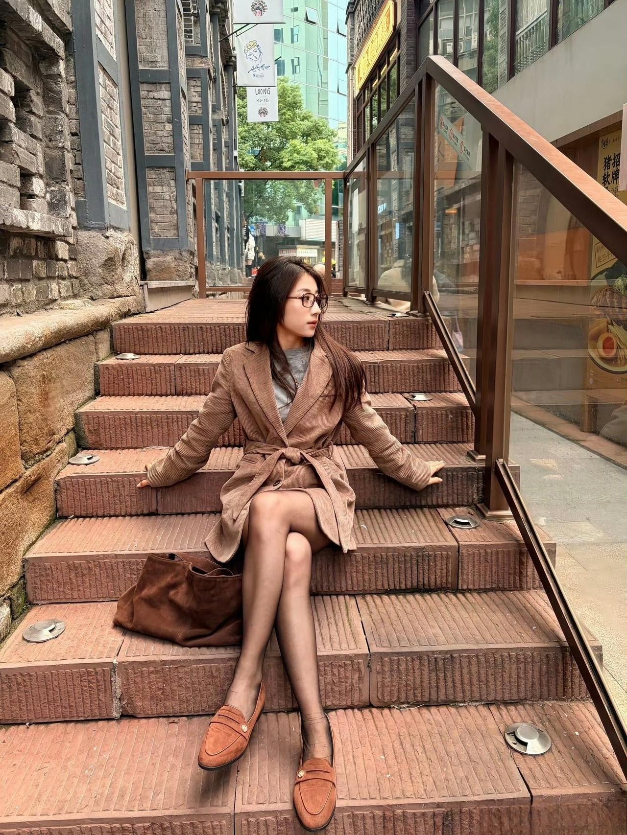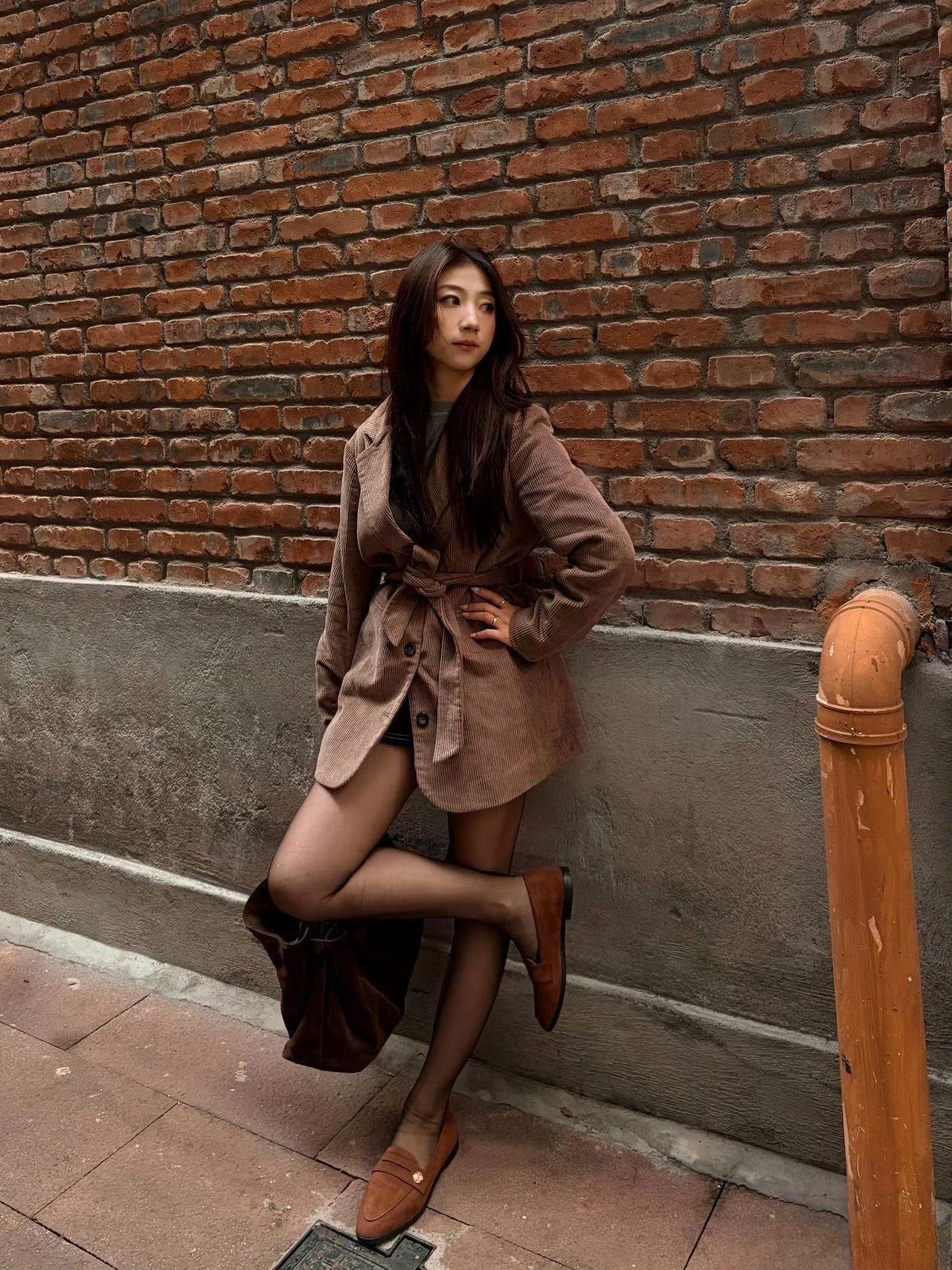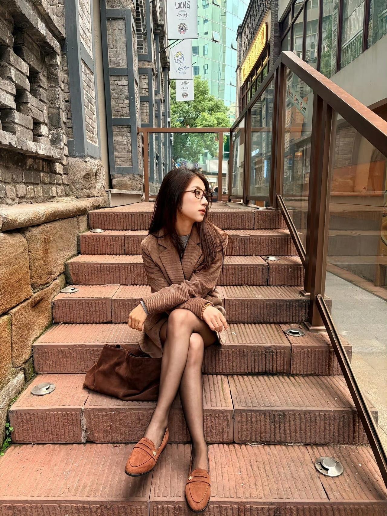 这套穿搭是复古松弛的棕系轻熟风,温柔慵懒又自带文艺质感。卡其棕系带西装外套自带复古氛围,宽松版型+收腰设计平衡了休闲与利落;内搭浅灰打底+短裤,简约基础款让棕系色调更显柔和,适配日常轻社交场合。 搭配棕色乐福鞋+同色系大包强化棕系统一感,提升整体和谐度;眼镜配饰注入文艺气息,让松弛感更具风格。咖棕色系穿搭 卡其棕穿搭 咖啡棕穿搭