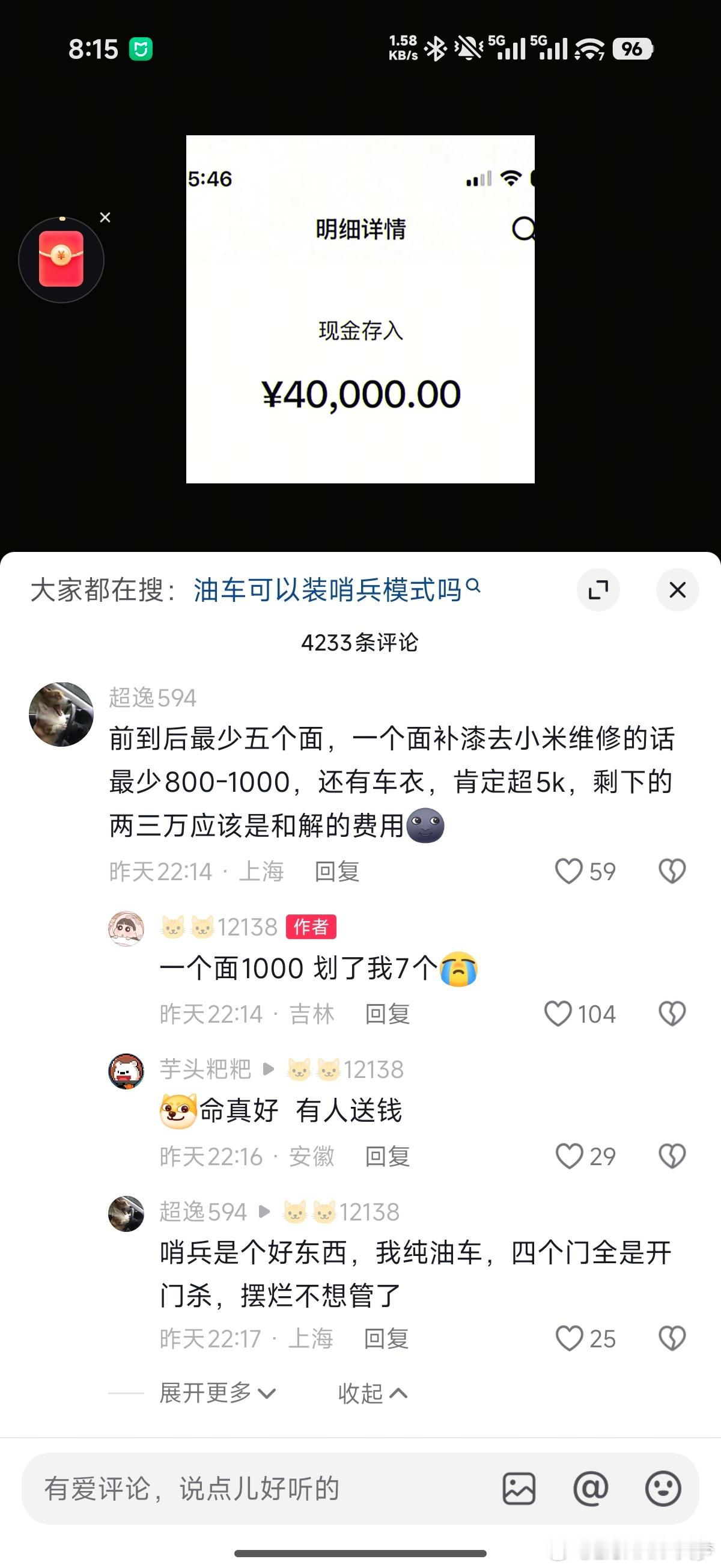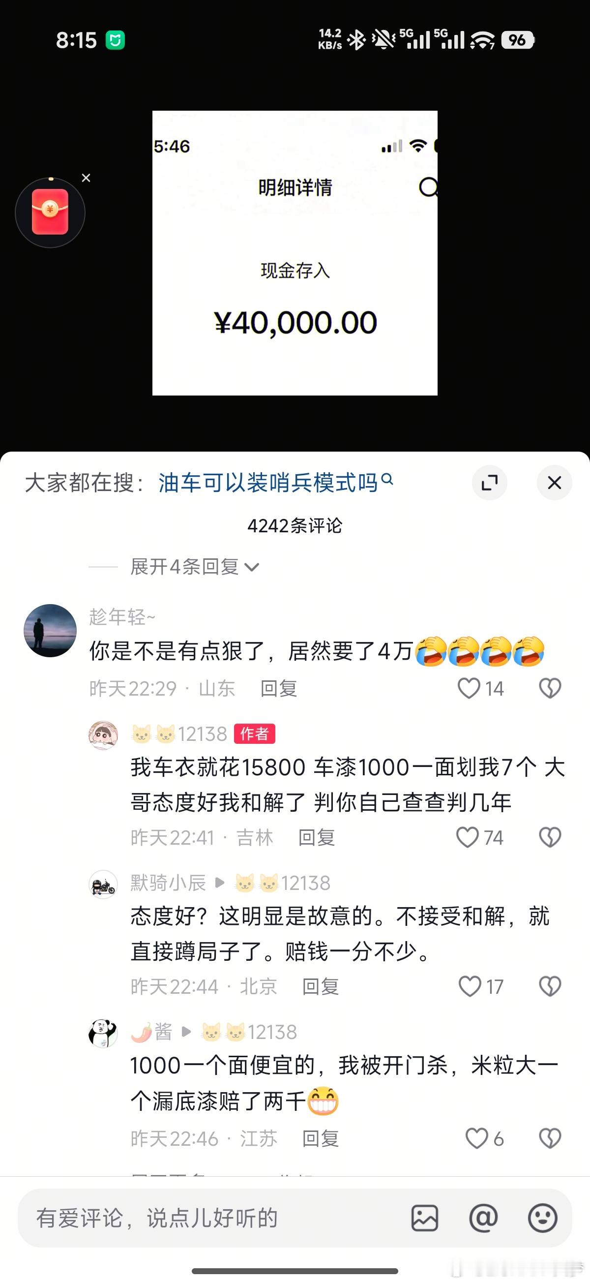 科普一下,恶意损坏他人财物最高可判7年,然后划车这种一般金额不会超过5万,正常来讲也可以判3年。就以这个车主案例来讲,车衣15800然后1000一个面总共七个面,就是两万多,然后这人自己直接赔了四万。不知道线下故意划别人车是什么心态,可以不喜欢,但是不要做法盲啊…