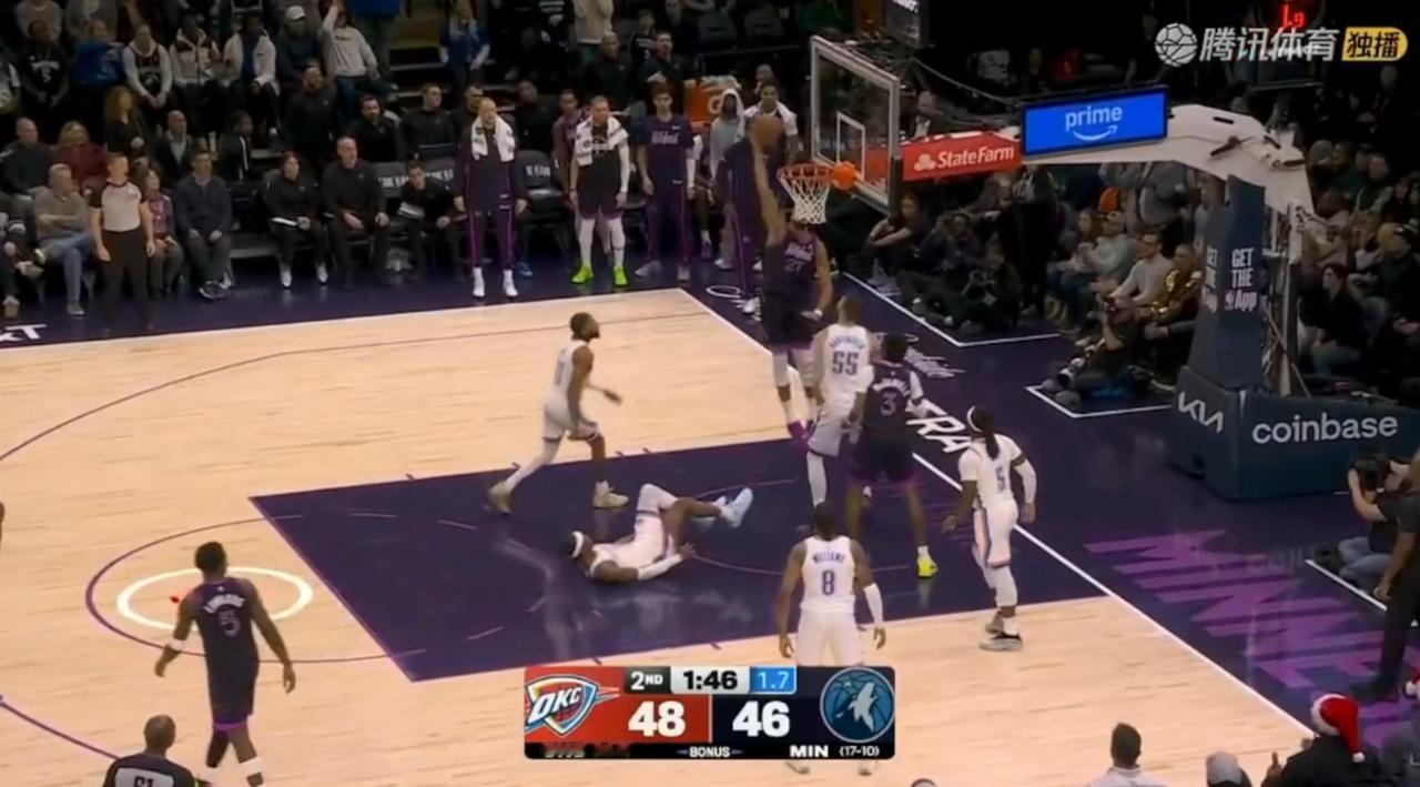 退役吧!戈贝尔空篮扣了个过桥,超离谱。 先被SGA封盖就很离谱了,奇葩的是再起居然扣了个过桥,哈哈。不慢放你根本理解不了(图2)。 他居然还有脸举手要犯规...... 之前也有2罚全丢,说实话他这种防守再好我是教练也不用,太糙了。奥胖又有素材了!