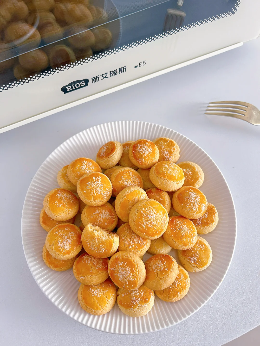 做好的椰蓉奶酥,酥到掉渣,椰香和奶香味非常浓郁,一口一个,真的巨好吃!