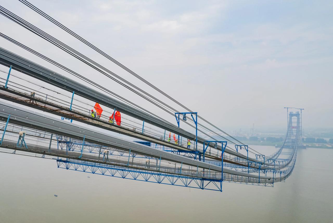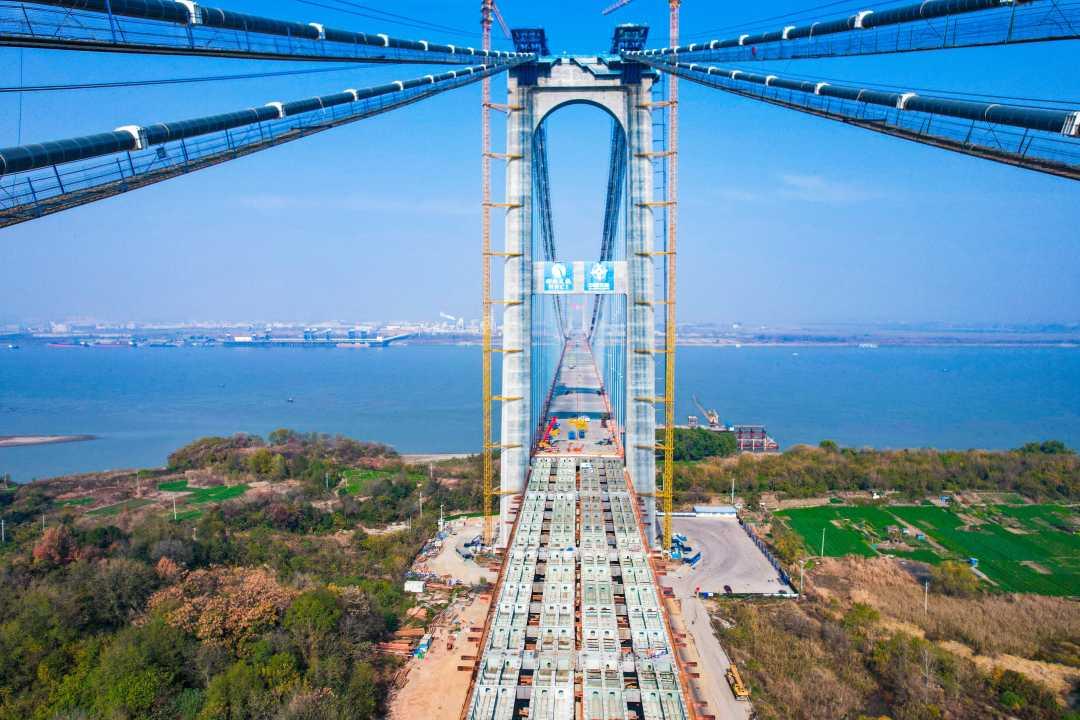 中国桥梁建设再创奇迹,燕矶长江大桥采用独特结构体系,刷新世界纪录,究竟有哪些黑科技助力? 随着中国经济的快速发展,中国桥梁建设不断突破技术瓶颈,成为全球瞩目的焦点。近期,湖北燕矶长江大桥的合龙再次引发广泛关注,其采用的“不同垂度四主缆体系悬索桥”结构体系,巧妙解决了超大桥跨与航空限高的双重约束难题。这一创新设计不仅提升了桥梁的跨度,还增强了其适应复杂环境的能力。此外,广西天峨龙滩特大桥将拱圈由单箱三室优化为双箱肋结构,首次将拱桥跨度提高至600米,展示了新型桥梁结构的巨大潜力。江苏常泰长江大桥则采用了“钢—混”混合结构空间钻石型桥塔,刷新了斜拉桥最大跨度的世界纪录。这些创新不仅提升了桥梁的技术性能,还推动了材料和装备的革新,如轻量化索鞍和高性能复合材料的应用,显著降低了桥梁的自重和建设成本。未来,随着人工智能技术的发展,三维数字孪生模型将进一步助力桥梁的智能化建造和管理。 燕矾长江大桥 中国最牛桥梁 湖北大跨度桥梁 长江大桥变形