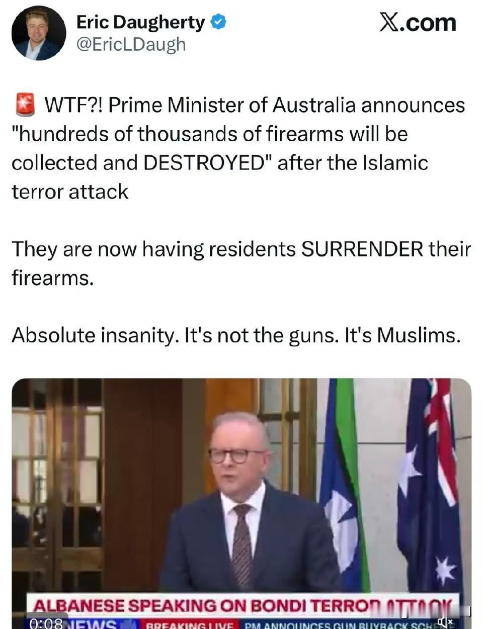 澳大利亚总理把恐怖袭击的原因转移到枪上。下一次澳大利亚应该禁车了。