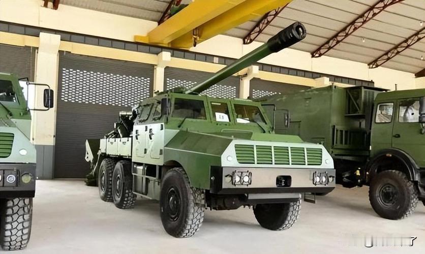 SH-1是中国研制的外贸型155毫米轮式自行火炮,主要用于出口和国际市场。 口径155毫米,身管为52倍径,可发射国产及北约标准弹药,包括底排弹、火箭增程弹、制导炮弹和末敏弹。 最大射程方面,普通高爆弹约30千米,底排弹约41.7千米,火箭增程弹可达50–53千米。 火炮采用6×6轮式越野底盘,全重约22吨,公路最高时速约90千米/小时,最大行程超过600千米。 底盘具备四轮转向和中央充放气系统,可越过0.4米垂直障碍,涉水深度1.2米,适合沙漠、山地等复杂地形。 射速方面,最大射速约6发/分钟,爆发射速可在前15秒内发射3发,车内携行弹药20发,分装在密封弹药仓中,支持半自动装填和遥控发射。 火控系统为数字化设计,集成火控计算机、北斗/GPS卫星定位和自动瞄准,作战转换时间约1–3分钟,可单炮独立作战,也可接入C4ISR网络。 车辆采用车炮一体化设计,相比传统火炮减重约40%,成本约为履带式自行火炮的1/3,效费比高。 装甲驾驶舱可防御7.62毫米穿甲弹和152毫米炮弹破片,乘员6人,辅助武器为1挺12.7毫米QJC-88高射机枪,备弹500发。 SH-1由中国北方工业公司研制,2002年通过外贸定型试验,2007年正式服役,主要用于满足国际市场对轻型高机动火炮的需求。 目前已出口柬埔寨等国,并在东南亚地区冲突中投入使用,常与90B火箭炮、AR-2远程火箭炮等配合,形成远中近结合的火力体系,执行精确打击任务。