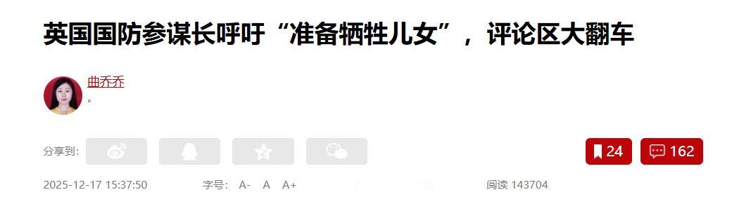 俄罗斯真正的死敌竟是它!2025年12月16日,这个国家的国防参谋长呼吁“准备牺牲儿女”!原来俄罗斯的真正死敌不是美国,也不是德国,而是它! 当俄乌冲突爆发后,有一个国家虽然并不起眼,但它却在不停地推动俄乌冲突发展。可能在很多人看来,俄罗斯真正的死敌是美国或者是德国,但实则不然,俄罗斯真正的死敌是这个国家。 尤其是在冷战以来,俄罗斯直接给这个国家构成了“最严重的直接威胁”。所以近年来两个国家的关系并不友好,在1917年的10月革命之后,列宁就曾公开指出这个国家是“最大的敌人”。 这个国家指的就是英国,列宁当时会做出这番表态,是因为当时的英国试图干涉俄罗斯的内战。 就在2025年12月16日的时候,英国新任国防参谋长在公开发表演讲的时候,就提到英国家庭必须准备好让子女参与对俄战争,并且为国牺牲。 据他本人表示,尽管俄罗斯直接攻击英国本土的可能性很小,但并不意味着为“零”。他的这一表态引起了极大的讨论,英国对俄罗斯的敌意已经非常大。 当俄乌冲突爆发后,它虽然没有德国等其他国家对俄的针对明显,但它对俄展开的制裁并不少,包括但不限于对乌克兰进行军事援助。 所以对于俄罗斯来说,真正摆在明面上的死敌,并不是美国,也不是德国和欧洲其他国家,而是英国。这个曾经被列宁列为“最大敌人”的国家,近期频繁就俄乌冲突发声。 对此,您怎么看? (信息来源:英国国防参谋长呼吁“准备牺牲儿女”,评论区大翻车-观察者网) (信息来源:英国曾经被列宁称为“最大敌人”-环球时报)
