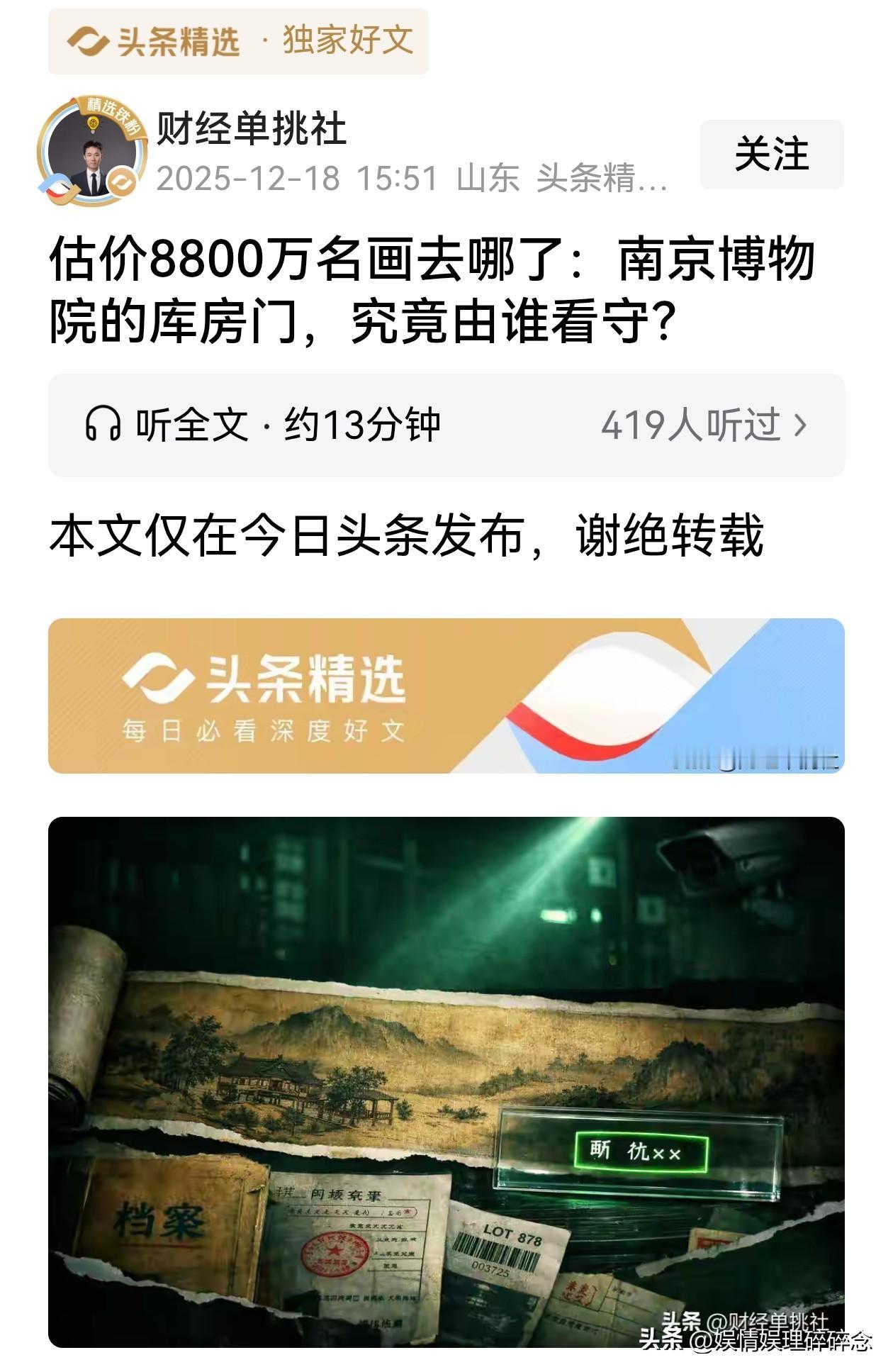 这世界果真像一个草台班子, 马未都曾发视频,讲述自己亲眼见到博物馆被调包的文物。 有网友扒出马未都曾经讲述自己多年前的亲身经历。他去到南方一城市,有人告诉,有一个东西,他要是喜欢可以便宜卖给他。结果那人把他带到博物馆,给他看了两个瓶子,他以为是跟这两个瓶子一样的别的文物,没想到,那人要卖给他的就是博物馆里的这两个。 马未都当时就愣了,博物馆的东西可不是能随便买的,那是要掉脑袋的事,他没买就走了。没想到,时隔二十年,那个博物馆做馆庆,马未都又去了,他发现那两瓶子已经明显被调包了。 历史总是惊人的相似,90年代时,就有报纸刊登过南京博物院保管员监守自盗的新闻。 真应了鲁迅先生的话:“中国公共的东西,实在不容易保存。如果当局者是外行,他便把东西糟完;倘是内行,他便把东西偷完。” 展柜里的文物蒙尘容易,人心的贪念除尘却难。那些被调包的何止是几件瓶瓶罐罐,更是一段段被偷走的、再也无法复原的历史。 南京博物院