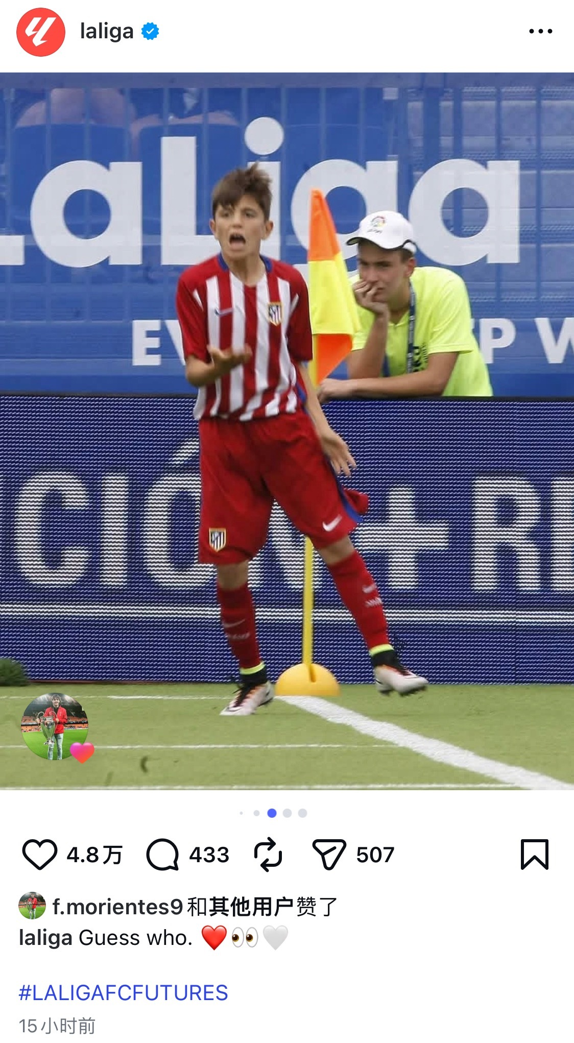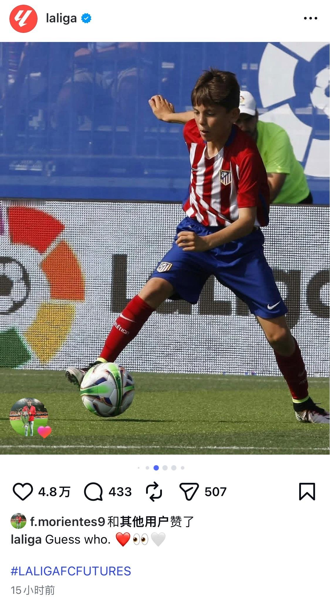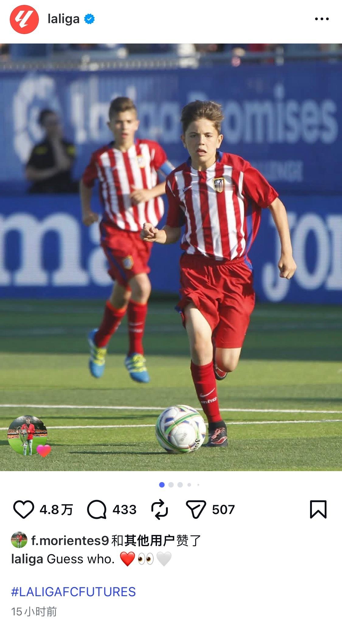 西甲官ins怎么发加纳乔在马竞青训时候的照片