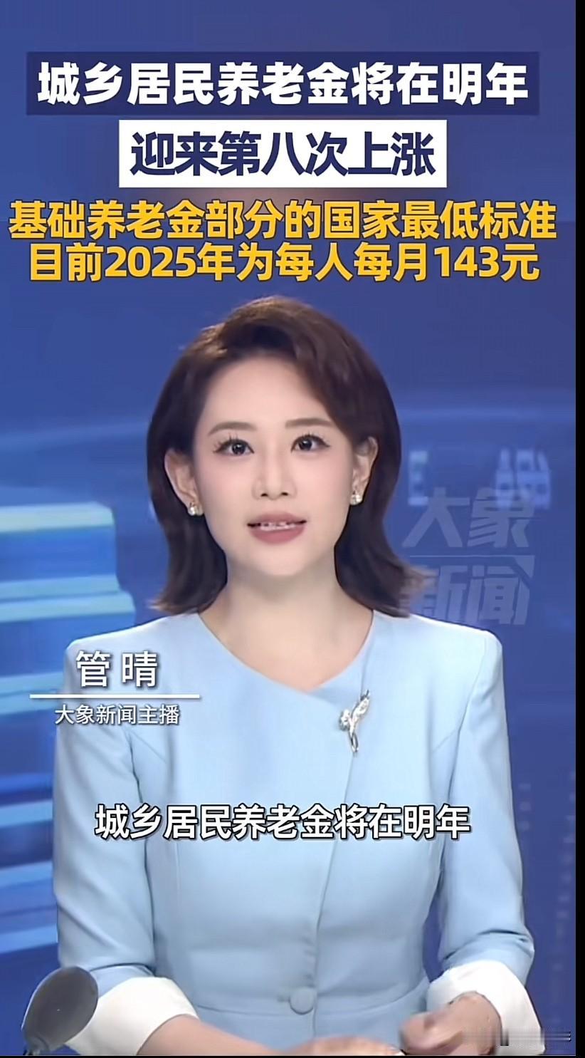 快看 养老金要提高了! 城乡居民养老金,明年有望提高到每人每月143元,这是在最低基础下,迎来第八次上涨。 看到这,身为农民的我,此刻的心情是一半开心,一半不开心。 先来,说说开心的心情吧!开心的是,国家关心我们农民群体了,能够每人每年都能提高一点基础养老金。 那么,现在来说说不开心的心情,个人感觉一个人一个月143块钱实在是太少了,按养老来讲,真的少之又少,143块钱仅仅是买一袋米和两斤肉的钱。 哎,我们农民们不易啊 !