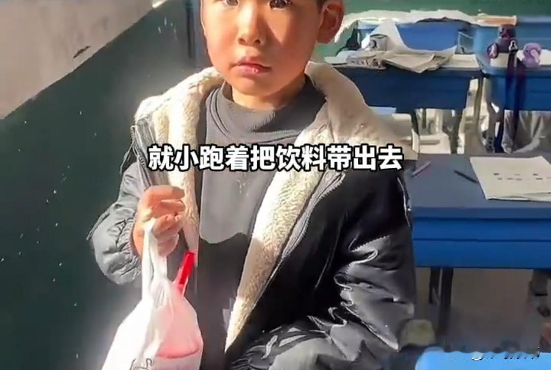 河南一乡村小学,9岁留守男孩在心愿单歪歪扭扭写下“冰雪mi成”。老师送来奶茶,谁知,男孩就抿了一口,拔腿就往外跑了。 河南周口一乡村小学的办公室里,班主任陈老师捧着一沓心意纸,坐在讲台边翻看——这是她每周的小约定,帮两位进步学生实现心愿。 “这周又是哪个小家伙有新念想?”陈老师笑着嘀咕,指尖拂过一张皱巴巴的纸,上面歪歪扭扭写着四个字:冰雪mi成。 她盯着那错了半边的“蜜”字,忍不住笑了:“这孩子,怕是馋镇上蜜雪冰城的奶茶了。” 这张纸的主人是班里的留守男孩小宇,才9岁,瘦瘦小小的,平时话不多,却总爱帮同学搬凳子、捡橡皮。 陈老师心里软乎乎的,当下便决定,要帮这个懂事的孩子圆梦。 午休铃一响,陈老师裹紧棉袄就出了校门。 冬日的风像小刀子似的刮在脸上,她踩着乡间土路,一步一滑地往镇上赶。五公里的路,来回走得脚脖子发酸,可当她拎着一杯温热的奶茶回到学校时,冻红的脸上满是笑意。 “小宇,来!你的心愿,老师帮你实现啦!”陈老师把奶茶递到小宇面前。 小宇猛地抬起头,原本有些黯淡的眼睛瞬间亮得像藏了星星,他慌忙站起身,小手在衣角上蹭了蹭,才小心翼翼地接过奶茶。 冰凉的杯壁贴着掌心,甜香丝丝缕缕钻进鼻子里。他笨手笨脚地插好吸管,凑到嘴边轻轻抿了一小口,甜意瞬间漫过舌尖,他忍不住眯起了眼睛,嘴角弯出一个小小的弧度。 可这笑意没停留多久,小宇突然拧紧杯盖,把奶茶揣进怀里,拔腿就往教室外跑。 “哎?小宇,你去哪儿?”陈老师愣了一下,满心诧异,赶紧快步跟了上去。 只见小宇迈着小短腿,跑得气喘吁吁,额头上冒出细密的汗珠,怀里的奶茶却被护得严严实实。 他一路冲到三年级教室门口,扒着门框往里瞅,看到角落里那个正低着头擦鼻涕的女孩,眼睛一亮,喊了声:“姐姐!” 女孩抬起头,脸颊红红的,正是小宇的姐姐。 小宇三步并作两步跑过去,把还带着体温的奶茶塞到姐姐手里,小声说:“姐,你快喝,甜的!” 姐姐愣了愣,刚要说话,就被追过来的陈老师撞了个正着。 陈老师看着姐弟俩,心里顿时明白了大半。 小宇回头看到陈老师,有点不好意思地挠挠头,仰着小脸认真地说:“老师,姐姐感冒了,让她先喝!” 陈老师的心像被什么东西轻轻撞了一下,软得一塌糊涂。 后来她才知道,小宇和姐姐跟着爷爷奶奶过,爸妈常年在外打工。姐姐身体弱,小宇别看年纪小,却总把好吃的、好玩的先让给姐姐。 在他心里,这杯来之不易的奶茶,这份稀罕的甜,本就该先分给姐姐。 9岁娃把心心念念的奶茶先给姐姐,小小年纪就懂疼人。老话讲血浓于水,这杯甜奶茶里,装的是姐弟间最纯的情,暖得人心窝子发烫。