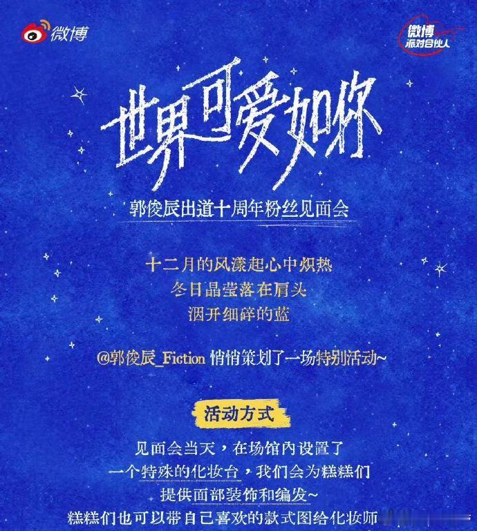 郭俊辰 到底谁追谁啊 郭俊辰十周年见面会太绝绝子啦!伴手礼、免费化妆活动,满满都是对粉丝的爱意。粉丝十年相伴,他用真心换真心,这双向的爱热烈又动人,让人忍不住想问,在这场“追逐”里,谁才是主角呢?