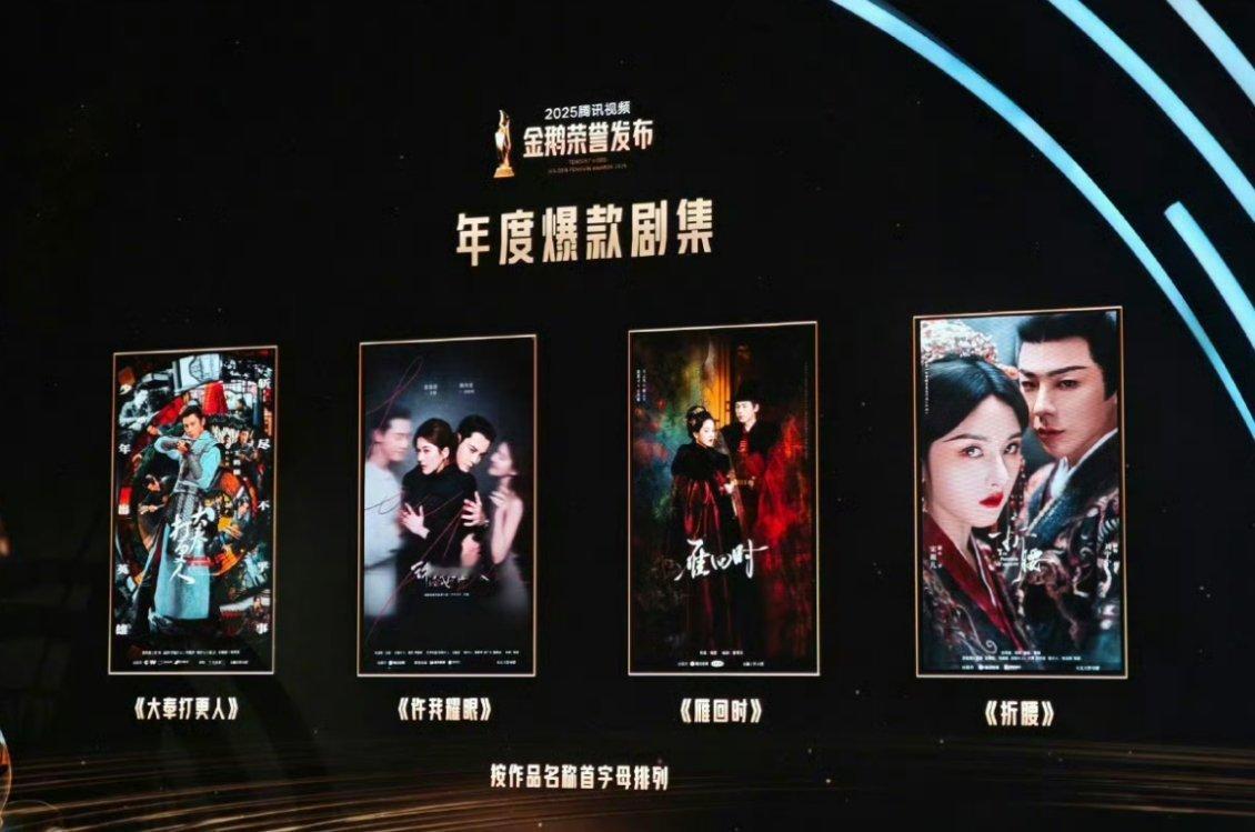 腾讯视频金鹅荣誉年度爆款剧集《大奉打更人》、《许我耀眼》、《雁回时》、《折腰》 腾讯视频金鹅荣誉 金鹅荣誉内场 腾讯年度爆剧
