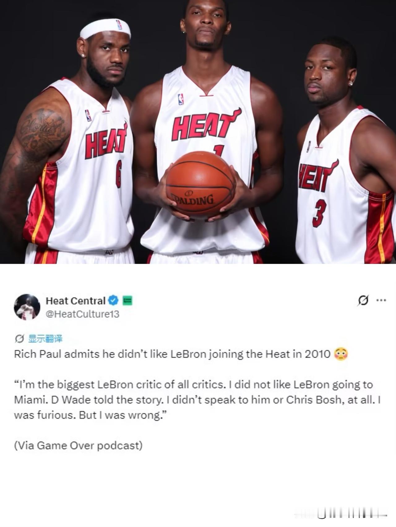 你敢信?里奇-保罗自认头号詹黑,曾反感詹姆斯做出决定1去投靠热火? 詹姆斯经纪人兼商业合作伙伴里奇-保罗在接受采访时透露:“我们总容易陷入一个误区,总想要靠自己单打独斗解决一切。肯定会有人抬杠,你这话不就是说给詹姆斯听得?错了,我可是头号詹黑,比谁都敢批评他。当年他去热火,我特别反感,我直接跟詹姆斯还有波什断了联系,我简直气炸了。但后来,我发现自己错了。” 当年,詹姆斯如果不去投靠热火,联手韦德、波什,或许一生无冠! 你认为呢?[吃瓜群众][吃瓜群众]