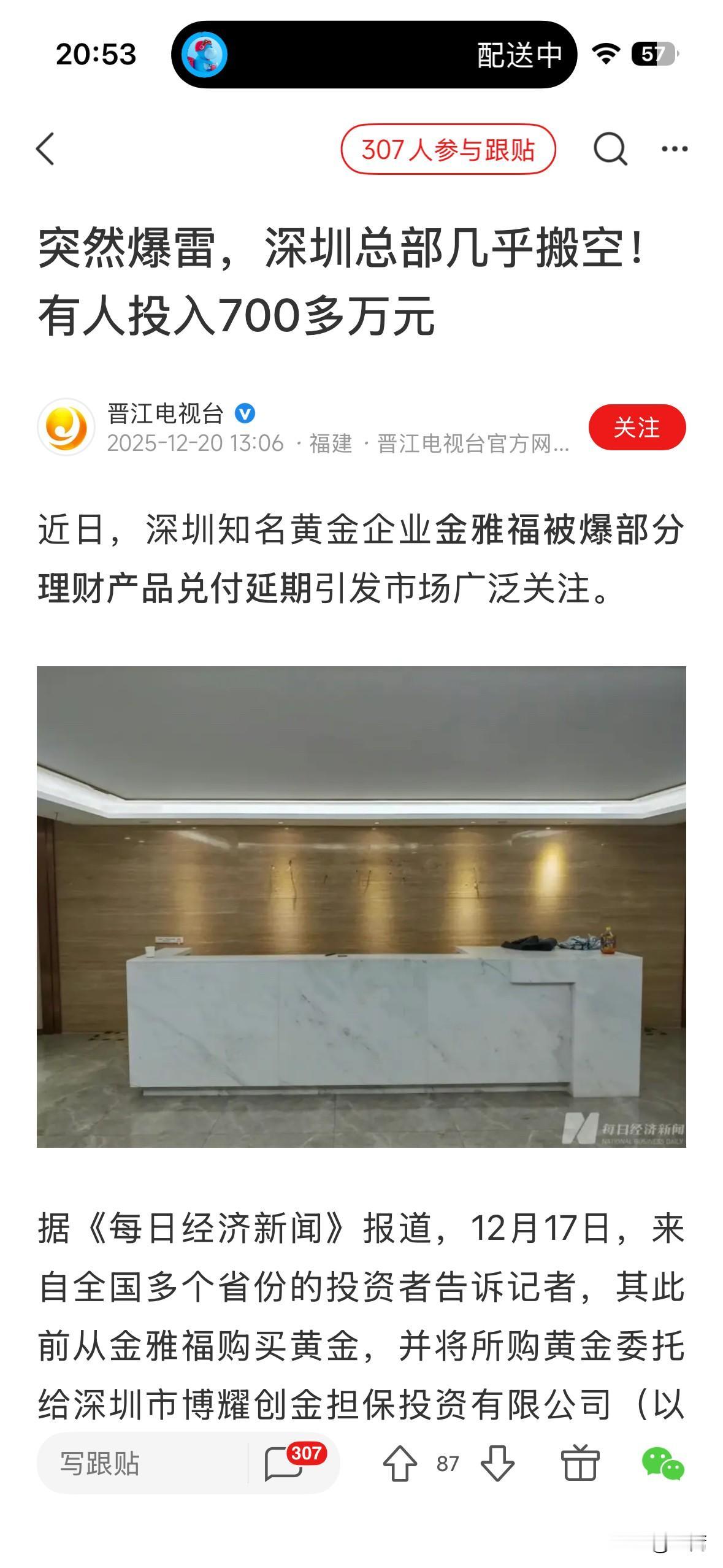 所谓知名的公司,我们何其有幸没有听过啊! 黄金上涨的结果就是骗子可以大行其道,一家年收入500多亿的公司,在深圳还能做到人去楼空,说消失就消失,留下一堆投资者风中凌乱。 都什么年代了,为什么那么多人要把自己辛苦赚回来的几十万几百万,就这么简单愉快的交给一家公司,就相信对方8个点回报率? 真的,这个回报率去股市买个四大行三桶油啥的,早就让你翻倍了好吧[捂脸][捂脸][捂脸]就算现在价格回落,至少还有分红给你。 没办法,骗子还是容易得手,因为你们从来不去想风险两个字。