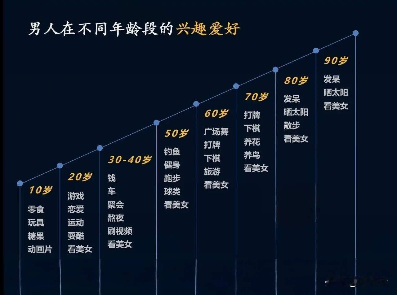 男人在不同年龄阶段的兴趣爱好揭秘!20岁之后,就有个共同爱好![捂脸][捂脸] 家人们,男人在不同的年龄阶段,就像不同季节里变换的风景,兴趣爱好也有着天差地别的变化。今天咱们就来好好揭秘一下,男人在各个年龄阶段那些独特的兴趣爱好。 少年时期(12 - 18岁):活力与激情的碰撞 这个阶段的男人,就像刚出笼的小鸟,浑身充满了活力和好奇心。他们的兴趣爱好大多围绕着运动和游戏展开。 在运动方面,篮球绝对是少年们的最爱。在球场上,他们尽情地奔跑、跳跃、投篮,享受着挥洒汗水的快乐。就像勒布朗·詹姆斯一样,少年们渴望在球场上展现自己的风采,成为众人瞩目的焦点。除了篮球,足球、乒乓球等运动也备受欢迎。他们在运动中锻炼了身体,培养了团队合作精神。 游戏也是少年们生活中不可或缺的一部分。 据调查显示,超过 80% 的少年都有自己喜欢的运动项目和游戏类型。这个阶段的兴趣爱好,不仅丰富了他们的课余生活,还为他们的成长和发展奠定了基础。 青年时期(19 - 30岁):自我探索与社交拓展 进入青年时期,男人开始更加关注自我成长和社交拓展。他们的兴趣爱好也变得更加多元化。 对于很多青年男人来说,健身成为了一种时尚和生活方式。他们走进健身房,举起哑铃,锻炼肌肉,追求健康和完美的身材。健身不仅让他们拥有了强壮的体魄,还提升了他们的自信心。在健身房里,他们还可以结识志同道合的朋友,拓展自己的社交圈子。 旅游也是青年男人喜爱的活动之一。他们渴望去看看外面的世界,体验不同的文化和风景。他们背着背包,踏上旅途,去探索未知的地方。在旅游中,他们开阔了眼界,增长了见识,丰富了人生阅历。 此外,一些青年男人还对音乐、电影、摄影等艺术领域产生了浓厚的兴趣。他们喜欢听各种类型的音乐,欣赏优秀的电影作品,用相机记录生活中的美好瞬间。这些兴趣爱好让他们的生活更加丰富多彩,也培养了他们的审美能力和艺术修养。 中年时期(31 - 50岁):事业与生活的平衡 中年男人往往面临着事业和家庭的双重压力,他们的兴趣爱好也更加注重平衡和放松。 钓鱼成为了很多中年男人的首选爱好。他们在湖边或河边静静地坐着,等待鱼儿上钩。钓鱼不仅可以让他们远离城市的喧嚣和工作的压力,还能培养他们的耐心和专注力。在钓鱼的过程中,他们可以思考人生,放松身心。 高尔夫球也是中年男人喜爱的运动之一。高尔夫球运动优雅、绅士,需要一定的技巧和策略。[点亮平安灯][点亮平安灯] 此外,一些中年男人还喜欢研究茶文化、收藏古玩等。他们在品茶的过程中,感受着茶文化的博大精深;在收藏古玩的过程中,体验着历史的沉淀和文化的传承。这些兴趣爱好让他们在忙碌的生活中找到了一片宁静的天地。 老年时期(51岁及以上):健康与回忆的守护 到了老年时期,男人更加关注自己的健康和回忆。他们的兴趣爱好也围绕着这些方面展开。 太极拳、广场舞等健身活动成为了老年男人的日常选择。这些运动温和、舒缓,适合老年人的身体状况。通过练习太极拳,他们可以调节身体机能,增强免疫力;通过跳广场舞,他们可以结交朋友,丰富晚年生活。 下棋也是老年男人喜爱的娱乐活动之一。他们在棋盘上运筹帷幄,思考着每一步棋的走法。下棋不仅可以锻炼他们的思维能力,还能让他们在回忆中寻找乐趣。他们可以和老友一起下棋,回忆过去的点点滴滴。 同时,老年男人还喜欢和家人一起聊天、散步,享受天伦之乐。他们会给晚辈讲述自己的人生故事,传承家族的文化和价值观。这些温馨的时刻,成为了他们晚年生活中最珍贵的回忆。 总结 男人在不同年龄阶段的兴趣爱好,反映了他们在不同人生阶段的心理需求和生活状态。从少年时期的活力与激情,到青年时期的自我探索与社交拓展,再到中年时期的事业与生活平衡,最后到老年时期的健康与回忆守护,每个阶段的兴趣爱好都有着独特的魅力。 了解男人在不同年龄阶段的兴趣爱好,不仅可以让我们更好地理解他们,还能为我们与他们的相处提供一些启示。无论是作为朋友、家人还是伴侣,我们都可以根据他们的兴趣爱好,为他们送上一份贴心的礼物,或者陪他们一起参与他们喜欢的活动。这样,我们可以增进彼此之间的感情,让生活更加美好。家人们,你们身边的男人在不同年龄阶段都有哪些兴趣爱好呢?欢迎在评论区留言分享![点亮平安灯][点亮平安灯][招财进宝][招财进宝] 中年男人喜好 个人兴趣爱好 男人兴趣解析