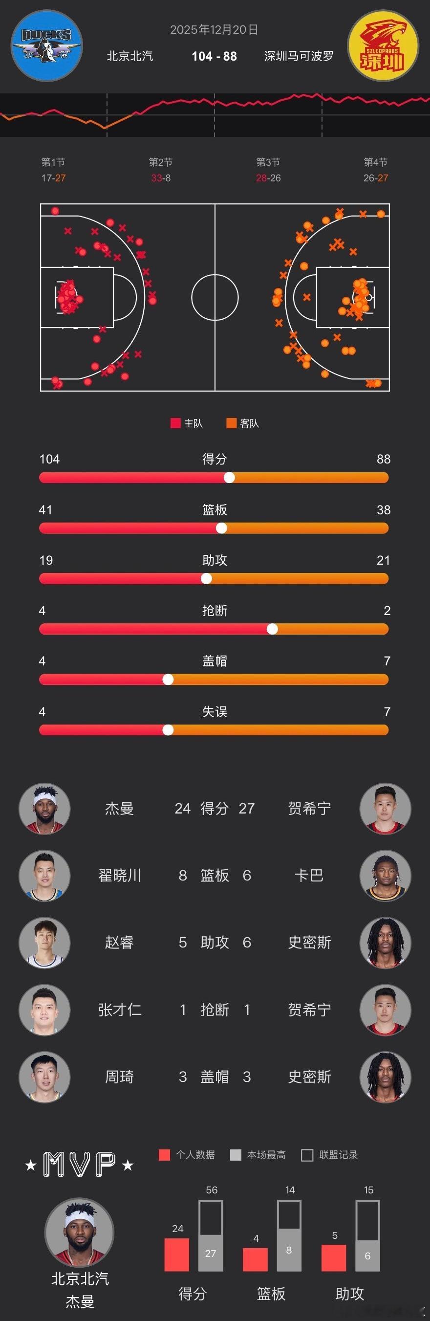 CBA常规赛第四轮、 在主场以104-88战胜深圳、收获赛季开赛四连胜!