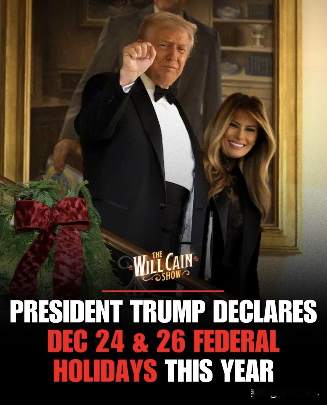 圣诞节提前来了!🎄🎉 特朗普总统发布了一项行政命令,将今年的平安夜和圣诞节后天定为联邦假日。 CHRISTMAS CAME EARLY!🎄🎉 President Trump issues an executive order establishing Christmas Eve and the day after Christmas as federal holidays this year.