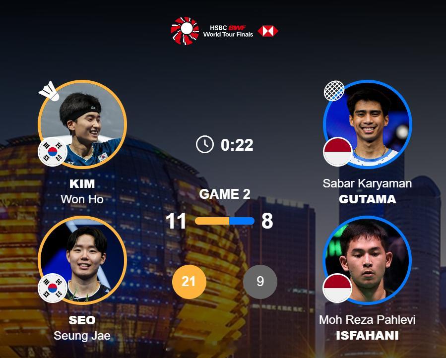 2025年世界羽联年终总决赛 男双 半决赛 金元浩 / 徐承宰 21-9 11-