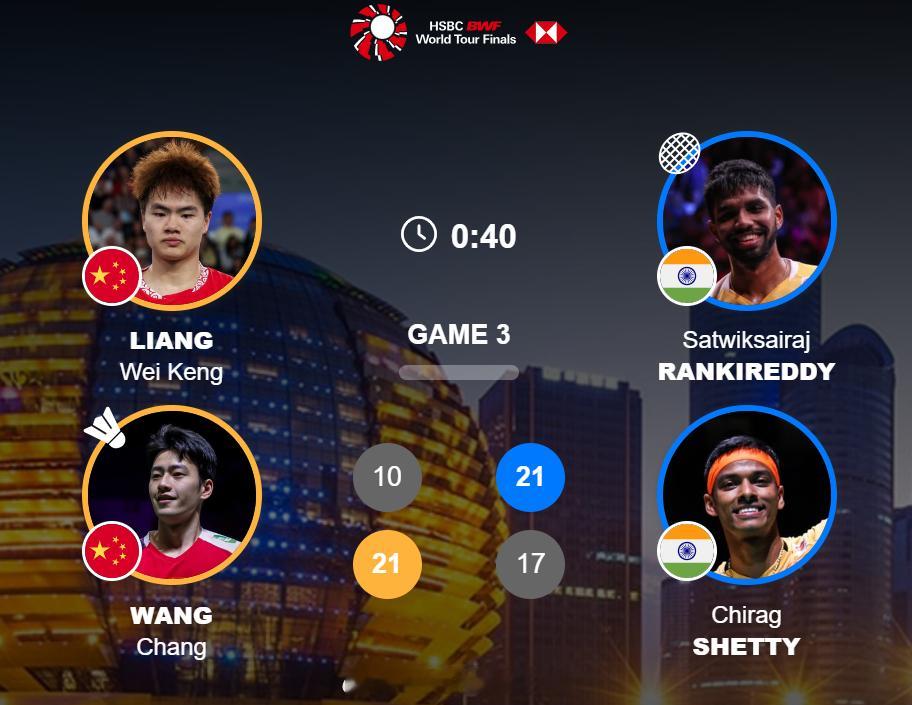2025年世界羽联年终总决赛 梁伟铿 / 王昶 10-21 21-17 兰基雷迪 / 谢提决胜局!!!!热点现场