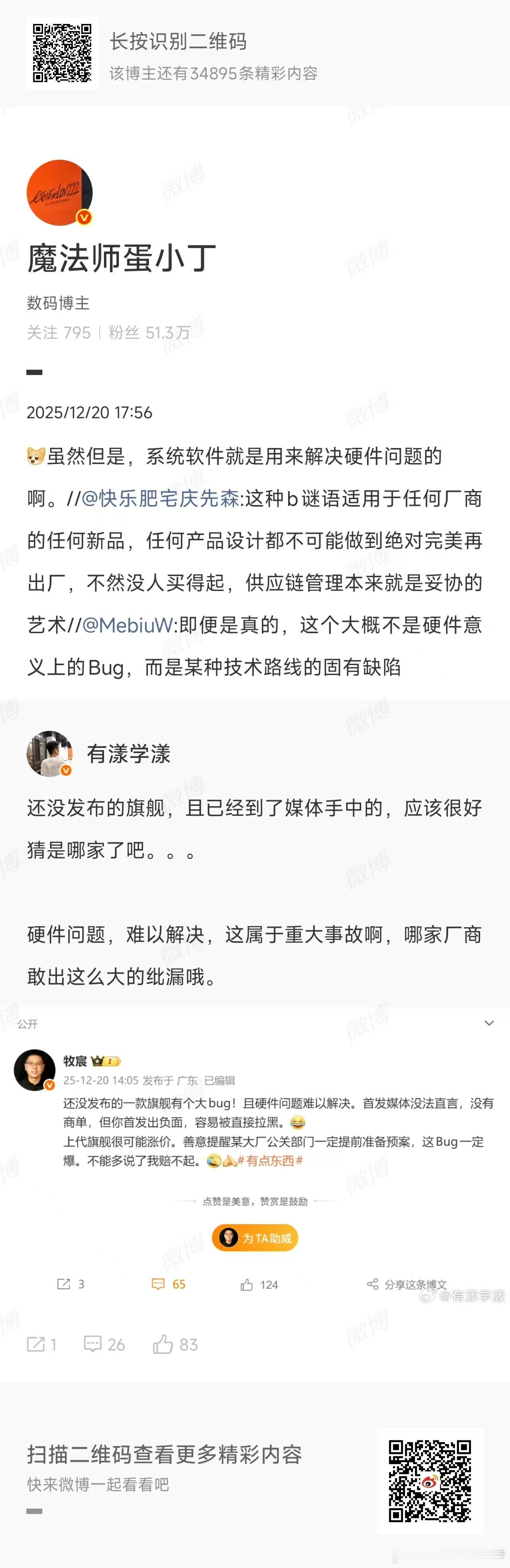 不知道是不是暗示的17U,是的话,就是纯小丑。手机行业发展这么多年,还能有什么大bug?还说什么系统软件就是解决硬件问题的,不知道是哪家的博主,学历看起来有些低。另外这事,没拿到媒体机的说这事没有发言权吧?拿到媒体机的又不会对外说。本质上就是先画个靶子,到时候随便找点问题,“你看发布会前我就说了”。
