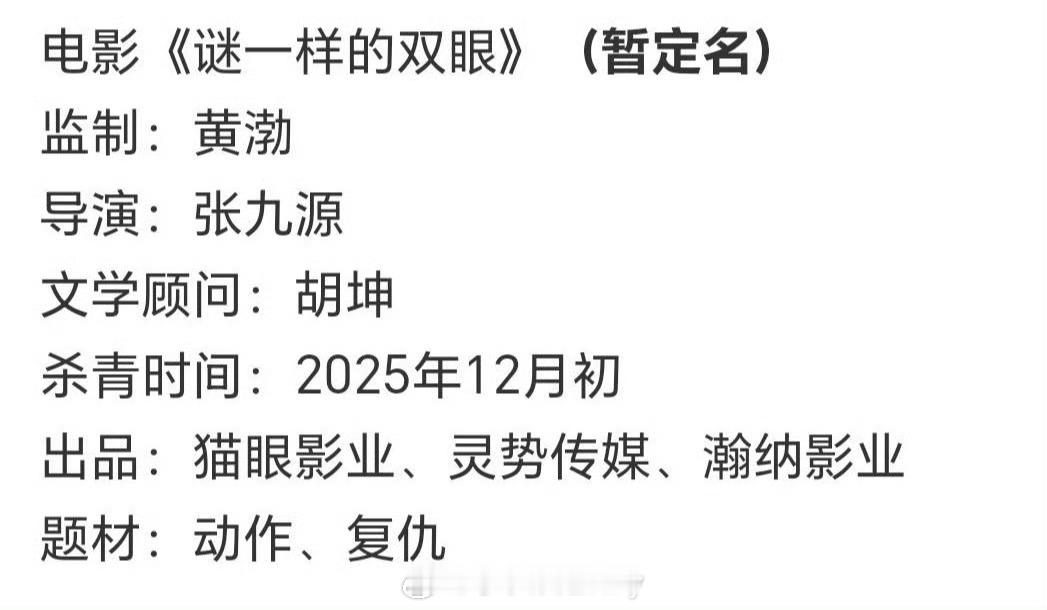 🎬《谜一样的双眼》故事梗概、人物小传监制:黄渤主演:倪妮、陈飞宇、李乃文、任达华、马思超、黄子琪、刘敏涛、刘骏