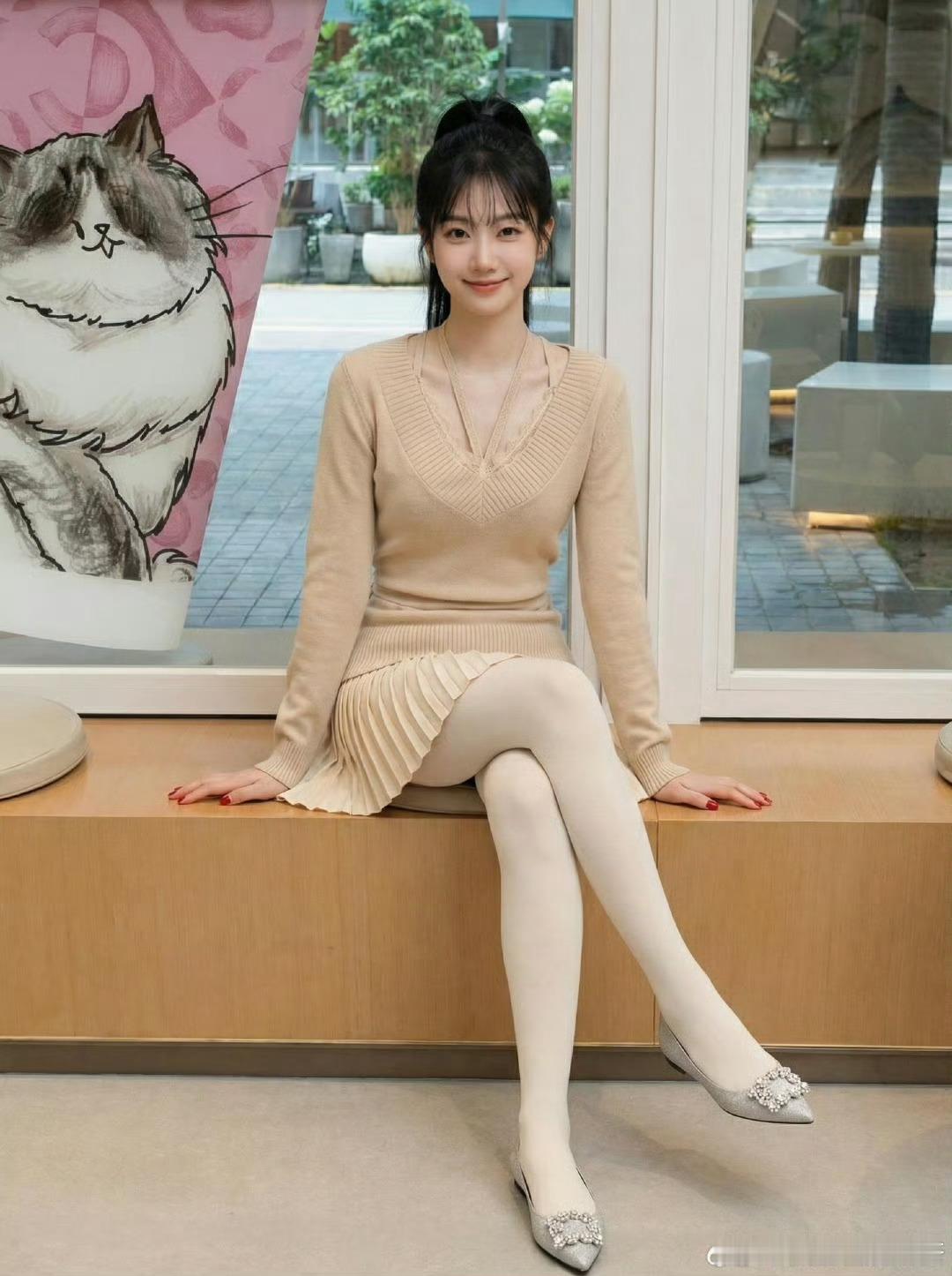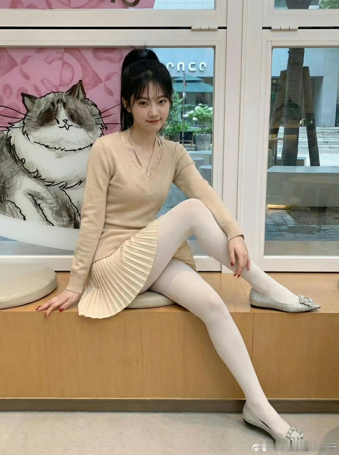程潇小姐姐,高马尾毛衣穿搭唯美写真,光脚丫好可爱。程潇