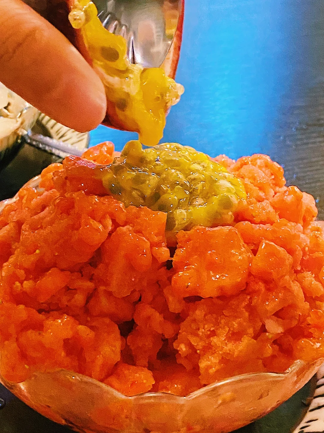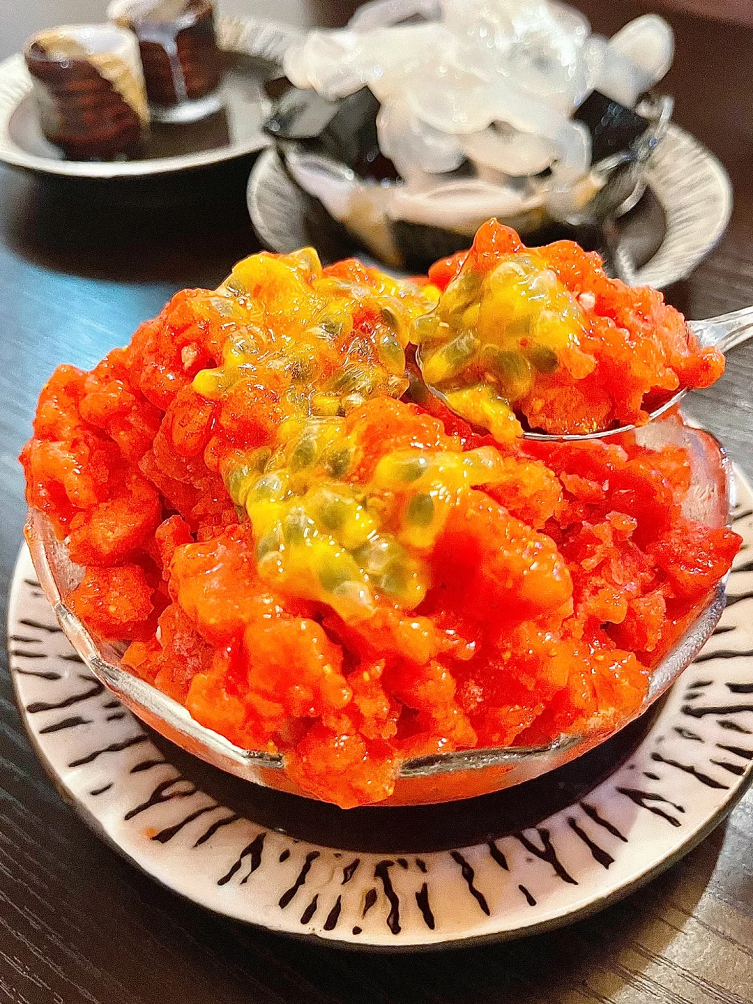 🥝百香果炒冰:爱吃酸味的uu们可以点!因为这个百香果真的很酸,吃一口冰就酸得很上头很过瘾!哈哈哈,但是不能吃酸的慎点哦!