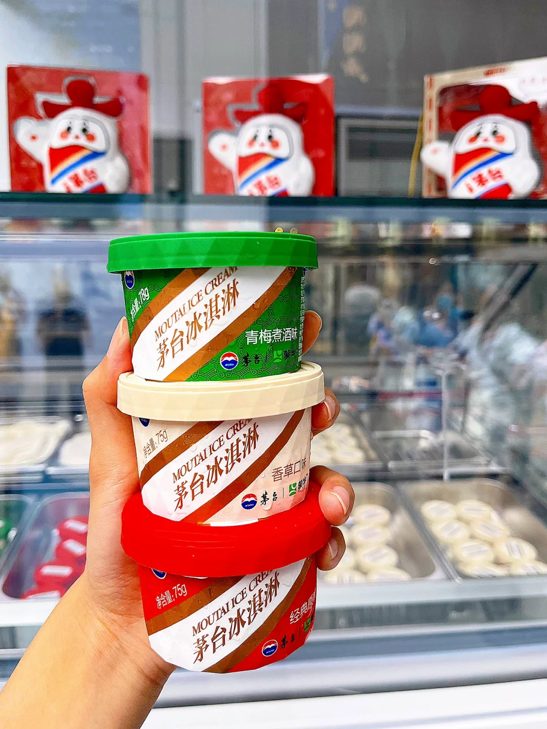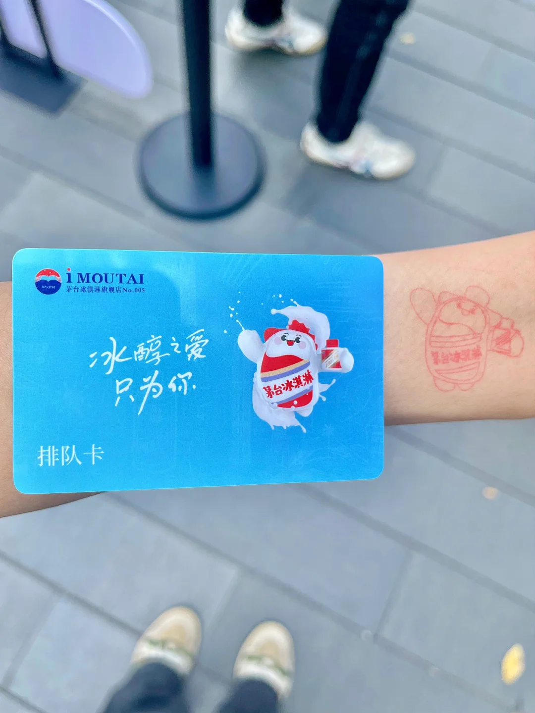 😎前段时间就听说了茅台冰淇淋要开来万象天地🔥今天终于被我蹲到了😍我早上十一点多的时候来探店,排了十分钟的队就买到了🧍‍♀️排队的时候给我盖了个茅台冰淇淋的章在手上,还派给我一个排队卡,也太可爱了把‼️给大家测评一下茅台冰淇淋3个口味的味道!