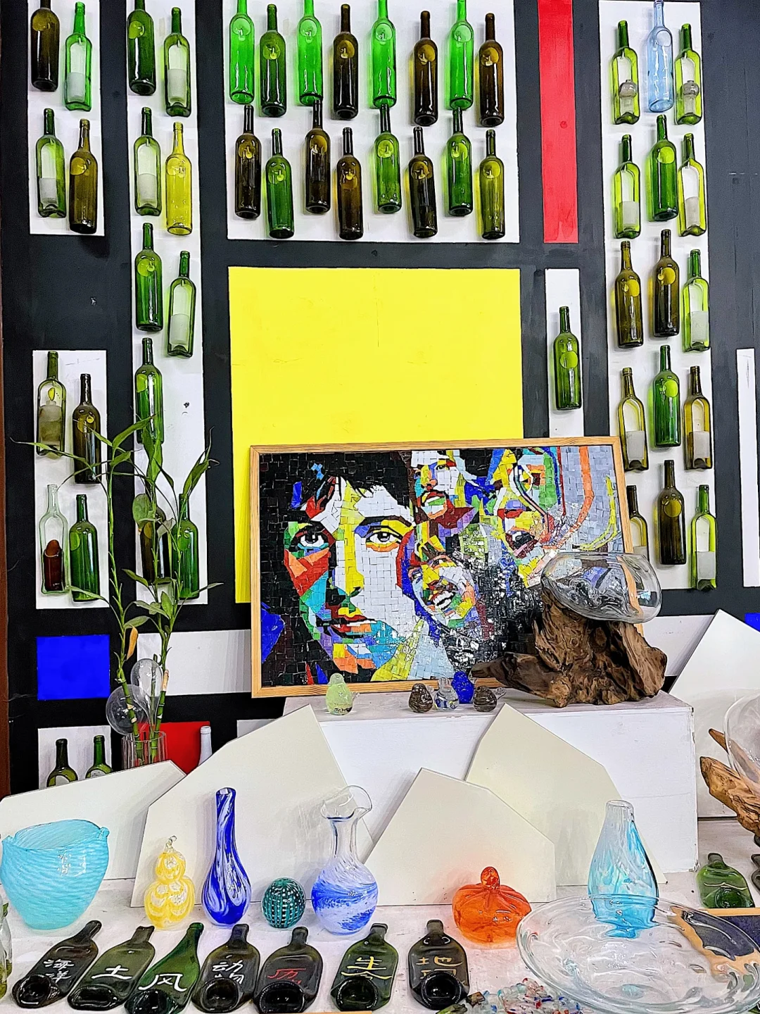 总的来说吹玻璃还挺有意思💡虽然只有不断吹气的辅助动作,但是能听到手艺人师傅眼里带着光,在讲解一块玻璃每一个工序是怎么做成的⭐️那种感觉就像我在看到玻璃以液体的形态在阳光下发光那样耀眼💥在玻璃制作探索过程中时不时会发出哇的声音🌹很喜欢玻璃工坊这句话“每一件手作玻璃作品,都独一无二。”