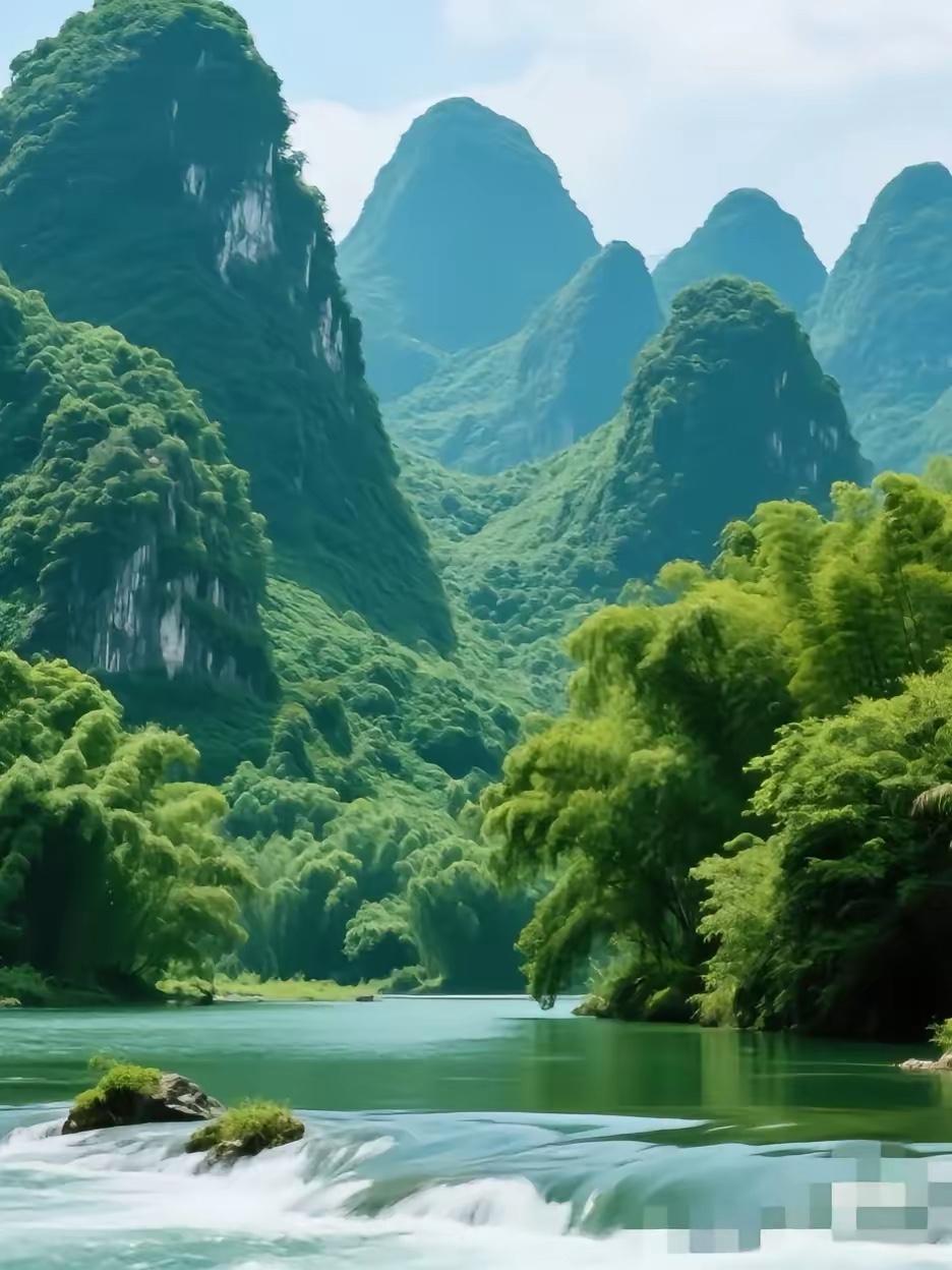 三个村民观绿水, 一弯细水绕青山。 横批:《观水与绕山》