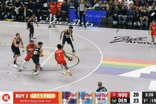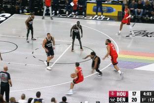 谢泼德登场就轰进两记三分 北京时间12月21日,火箭与掘金的比赛来到首节3分钟处,谢泼德在登场后就轰进两记三分。 图一:球队17-20落后,谢泼德登场初次出手,左弧顶就轰进三分。 图二:掘金再次反超,谢泼德又接阿门里突外传轰进第2记三分。 凭借谢泼德的两记三分,火箭咬住分差。
