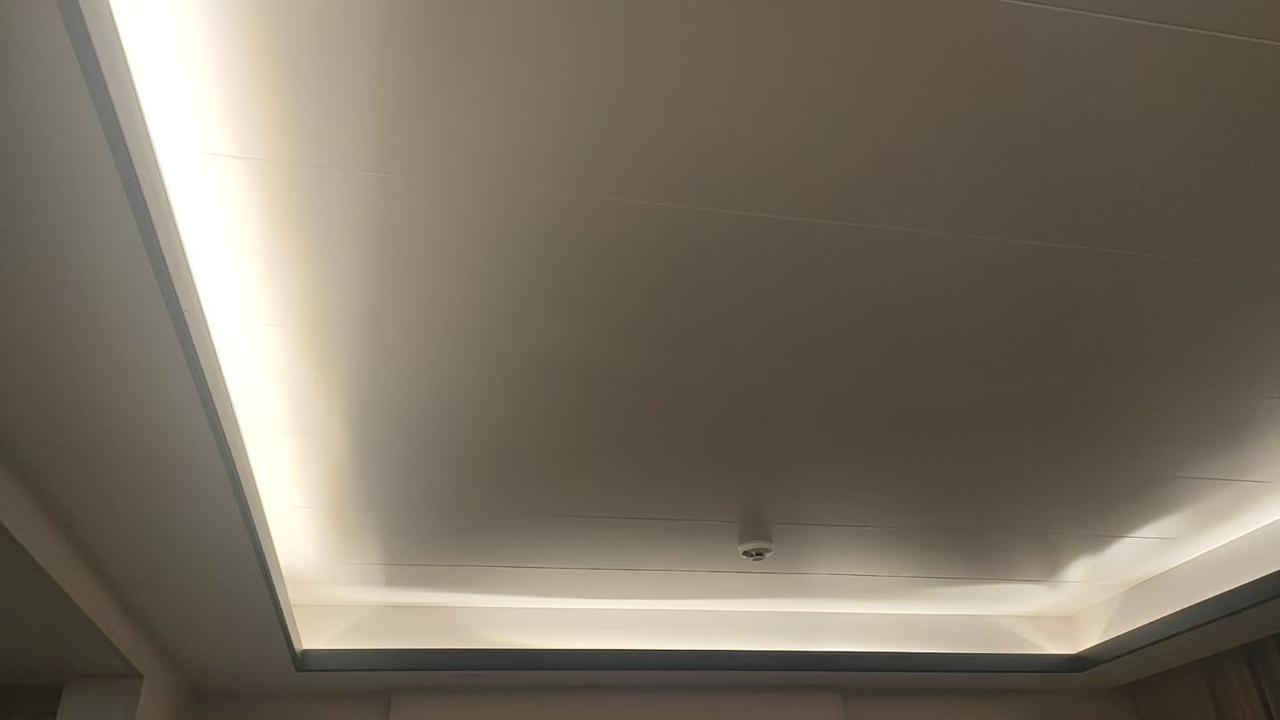 每次抬头看到家里这个吊顶,我都觉得当初的选择太对了! 做的这种回光灯带设计,开灯之后光线柔柔的,一点都不刺眼,晚上在客厅待着,氛围感直接拉满。 中间还藏了个小小的感应装置,不占地方还实用。 吊顶的板材拼接得也很整齐,没有突兀的缝隙,细节做得特别到位。 朋友来家里玩,都问我这吊顶是哪家做的,每次听到都觉得选对装修师傅太重要了,这种温馨又精致的小细节,真的能让家里的幸福感翻倍。