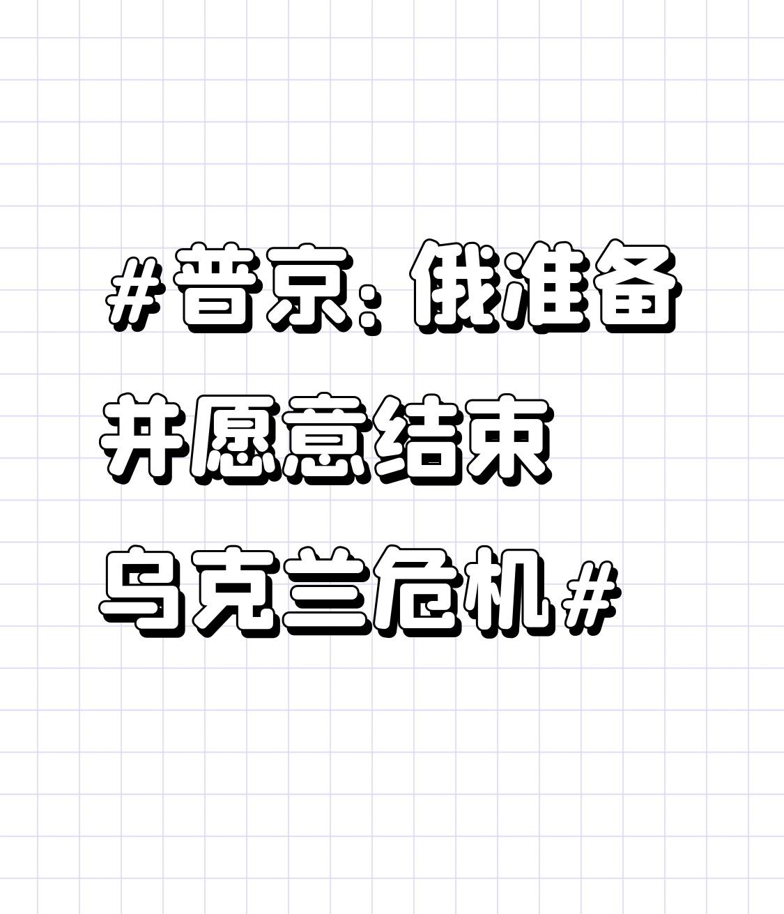 普京:俄准备并愿意结束乌克兰危机 普京表态俄准备并愿意结束乌克兰危机,这态度很明确了。当地时间12月19日,普京在“年度盘点”活动里说得清楚,要在消除危机根本原因的条件下,按去年6月俄外交部阐述的原则和平解决。 俄方也留意到基辅有对话的信号,可现实是,基辅实际上拒绝和平结束危机,而且俄罗斯还没看到乌方有讨论领土问题的意愿。和平的大门俄方敞开着,就看乌方怎么选了,希望双方能早日找到和平解决的办法,让百姓少受点苦。