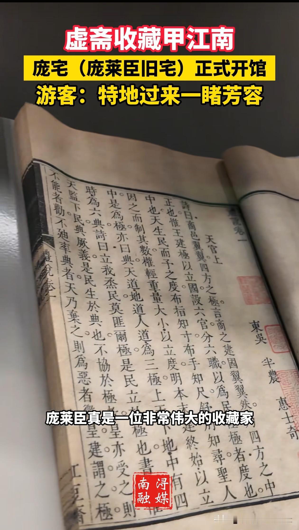 南京博物院的事还在发酵, 南浔已经接住泼天流量了。 南浔古镇庞宅,也就是庞莱臣的旧宅开始接待游客了。 近日,南浔古镇庞宅正式开馆,馆内展示了庞莱臣书画作品,还有9件真迹同步展出,很多游客因为看了网上新闻特地过来一睹芳容。 游客说:我觉得他是一个胸怀比较大的人;这里的藏品非常丰富,庞莱臣真是一位伟大的收藏家。 越是这样,越觉得惋惜,庞莱臣要是把那几千件宝贝全留给自家子孙,不开玩笑,光靠这些藏品,就足够弄一个名气响当当的私人博物馆了。 但他没这么干。时局动荡,风雨飘摇,他选择将藏品一批一批,捐给了国家。他希望,老祖宗的这些宝贝能有个安稳去处,能让更多人看见。 可看着如今这波流量,又忍不住叹气——要是老先生泉下有知,看到自己倾尽心血守护的藏品,如今要靠一场风波才能被更多人记起,心里该是什么滋味? 乱世藏珍不易,传世护宝更难,愿每一件文物,都能被温柔以待,不负前人,不负来者。 南京博物院