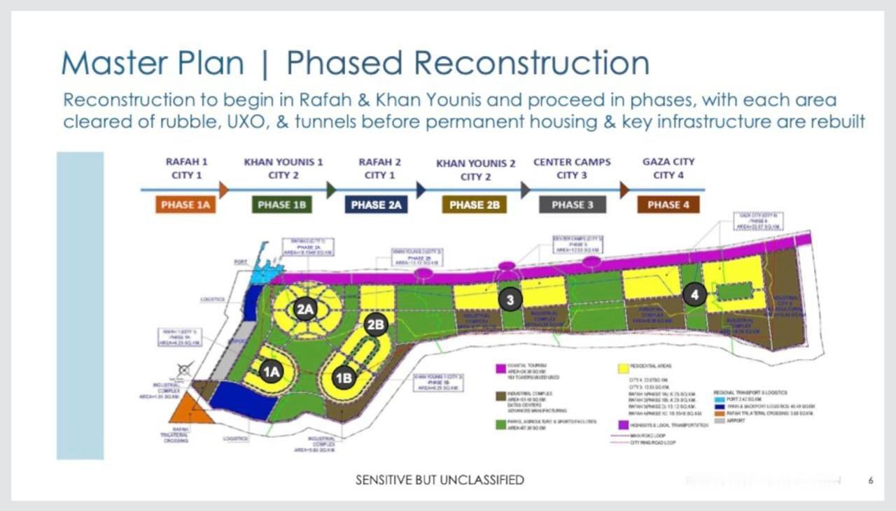 这张幻灯片概述了美国起草的“日出计划”(Project Sunrise)将如何通过分阶段、由南向北的重建方案来重塑加沙。➡️ 重建工作首先从拉法和汗尤尼斯开始,随后逐步推进到中央难民营和加沙城,加沙城最后重建。➡️ 每个阶段都有其前提条件:在建造任何永久性住房或基础设施之前,必须先清理区域内的瓦砾、未爆弹药和地道。➡️ 重建顺序明确——第一阶段涵盖拉法和汗尤尼斯,第二阶段扩展到南部其他地区,第三阶段针对中央难民营,第四阶段则专注于加沙城。海外新鲜事热点现场