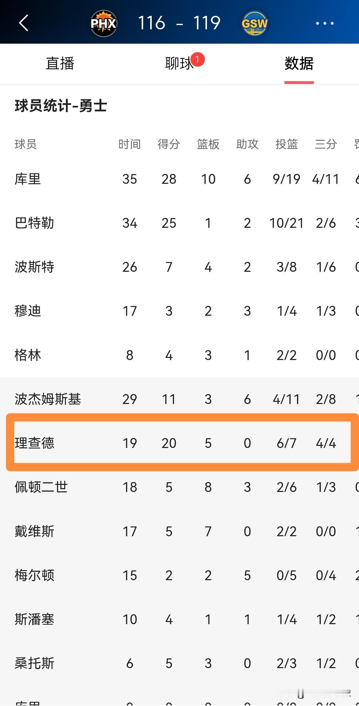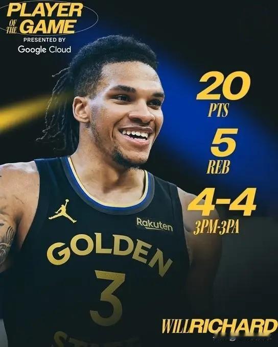 勇士官方真是太偏爱小将理查德了!今天勇士在主场以119:116险胜太阳,本场比赛小将理查德发挥出色,他替补出战19分钟非常高效的得到20分5篮板。值得注意的是,在比赛结束以后,勇士官方评选出了本场比赛的最佳球员,最终理查德凭借着出色的表现成功当选。 老实说,在勇士的青年才俊中,目前最受球队青睐的当属理查德,他很有可能会被球队视为建队基石。