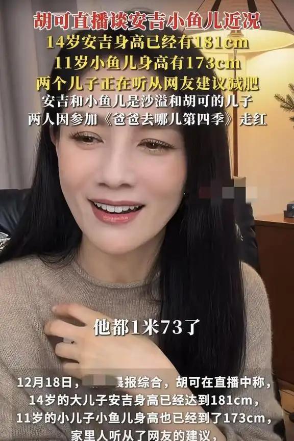 14岁的安吉已经181cm,11岁的小鱼儿也长到173cm,两个阳光大男孩让胡可骄傲不已。从‘东北宋仲基’到如今壮实小伙,兄弟俩的成长变化令人惊叹。面对网友建议,胡可正和沙溢一起帮孩子们科学减肥,毕竟沙溢从油腻大叔逆袭成校草就是最好的榜样!