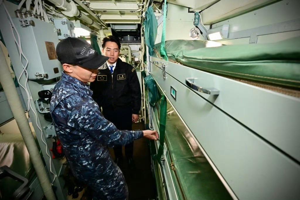 小泉进次郎参观苍龙级潜艇青龙号。 🔻鱼雷旁边的床是最舒服的,温度不高,本子这潜艇卧铺的条件确实还行。