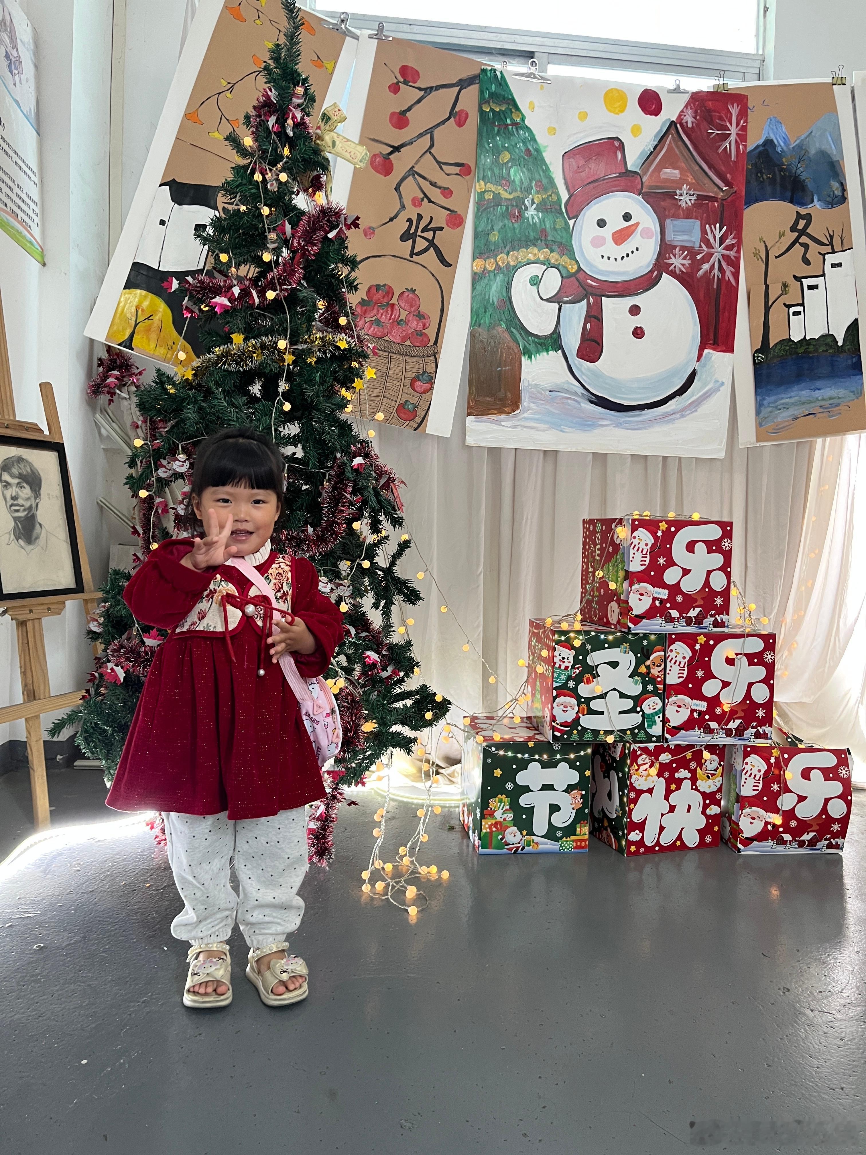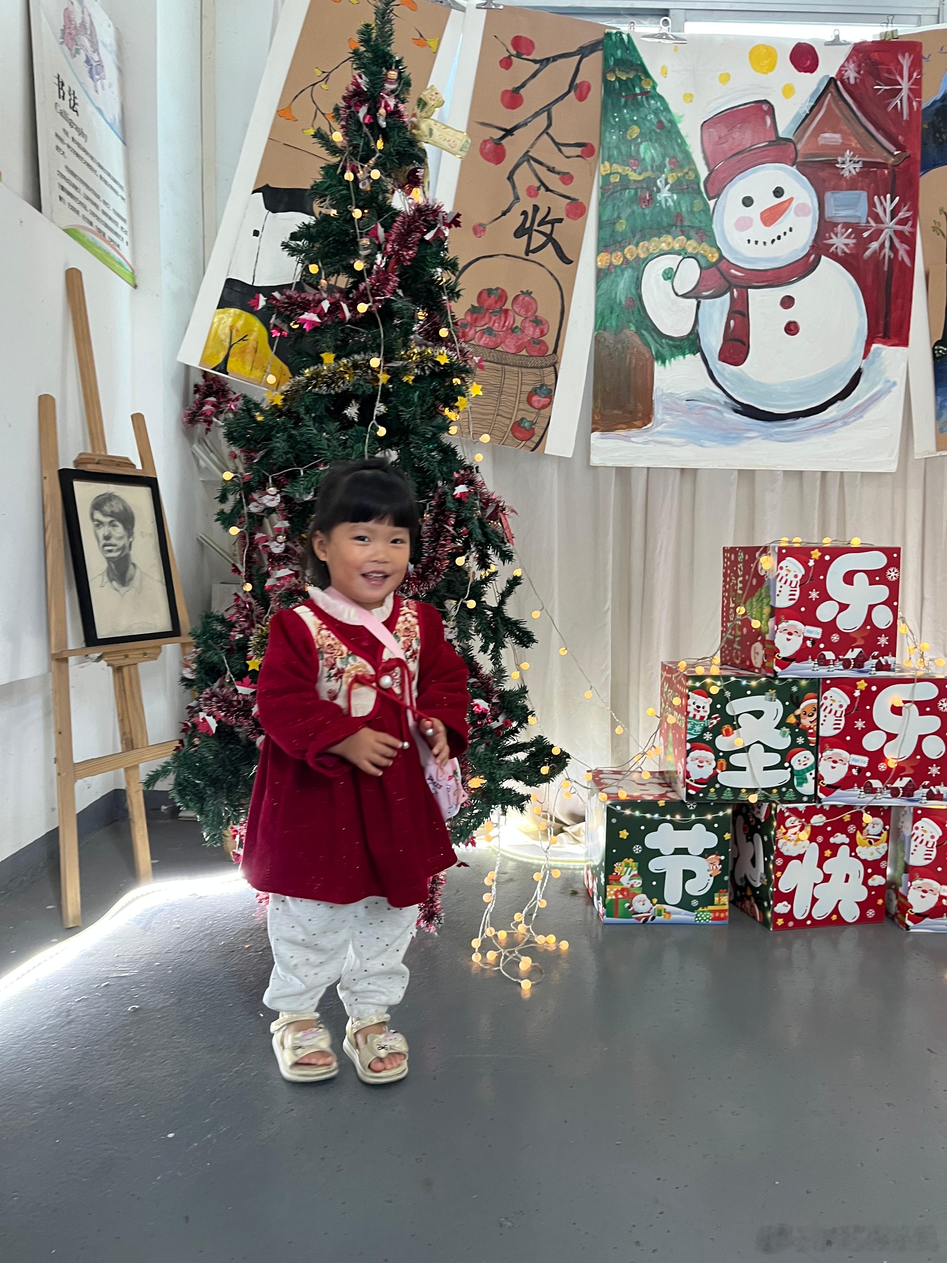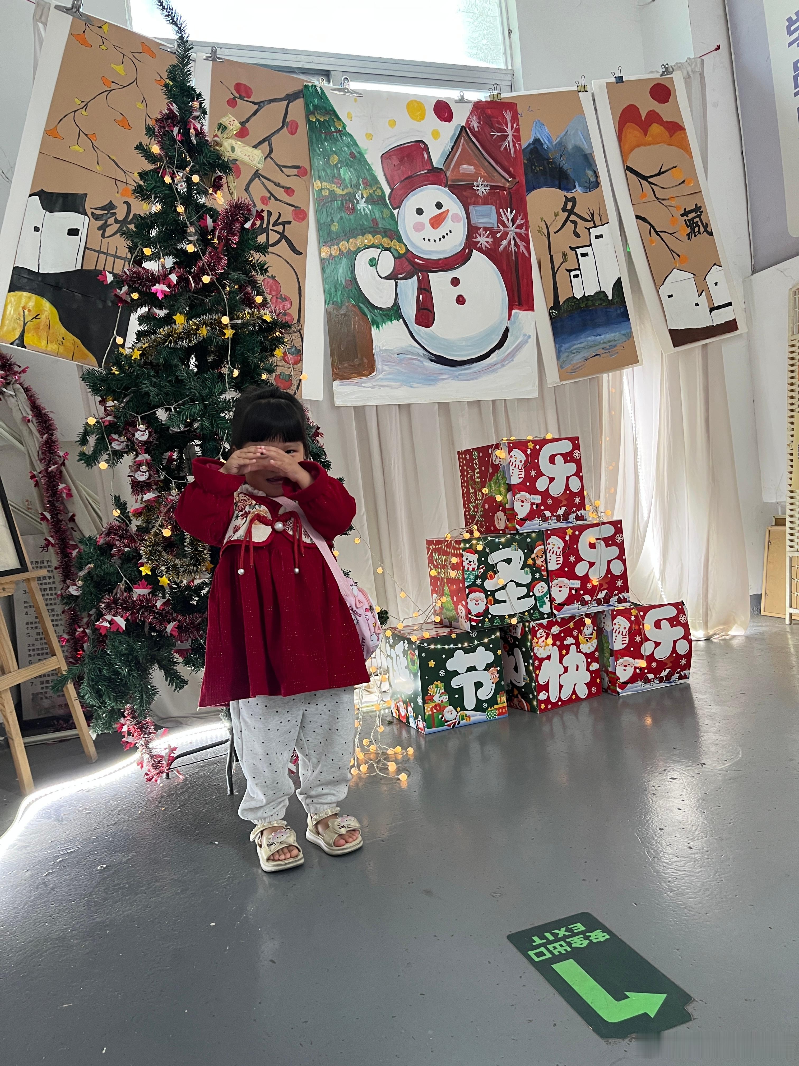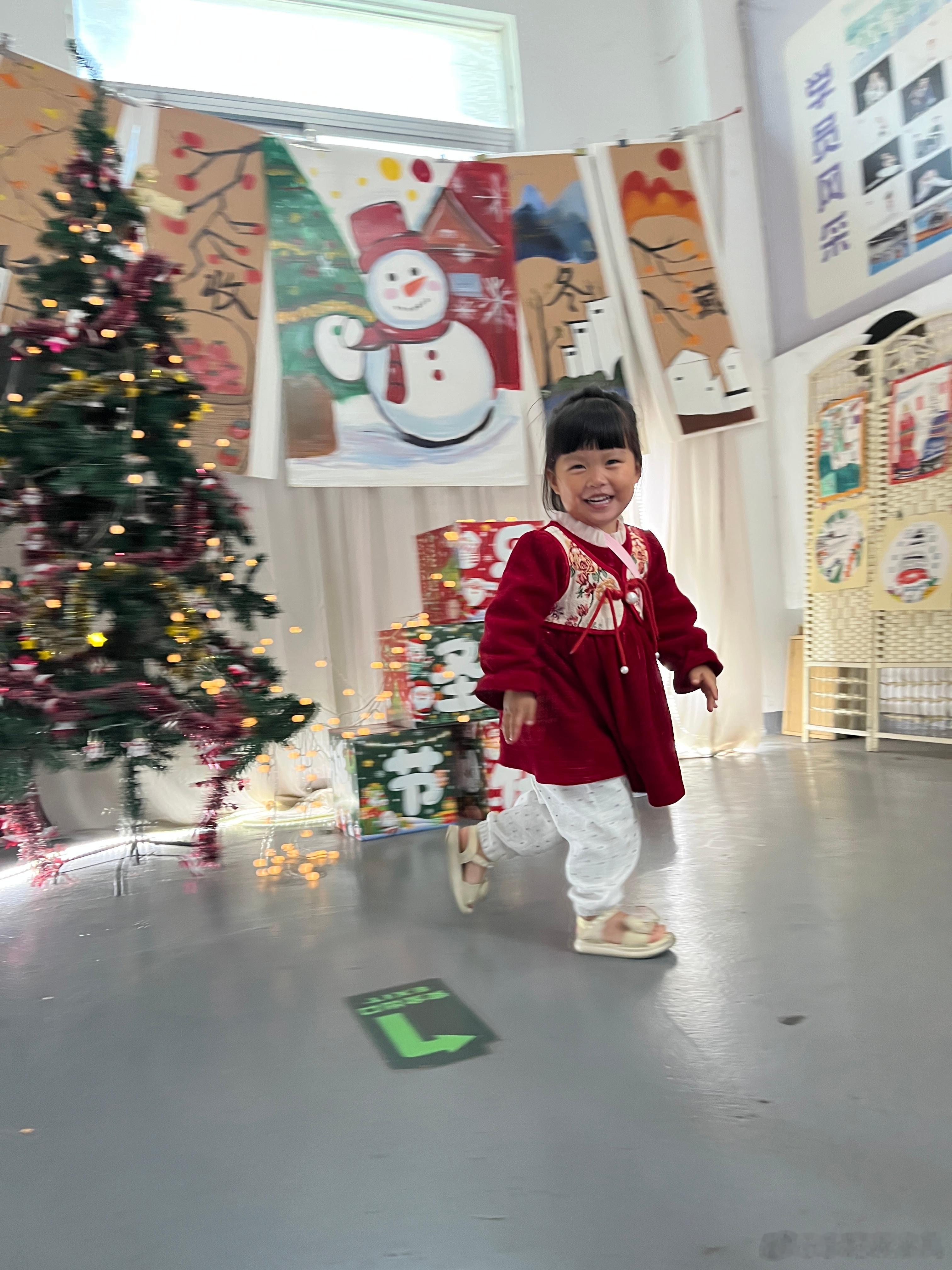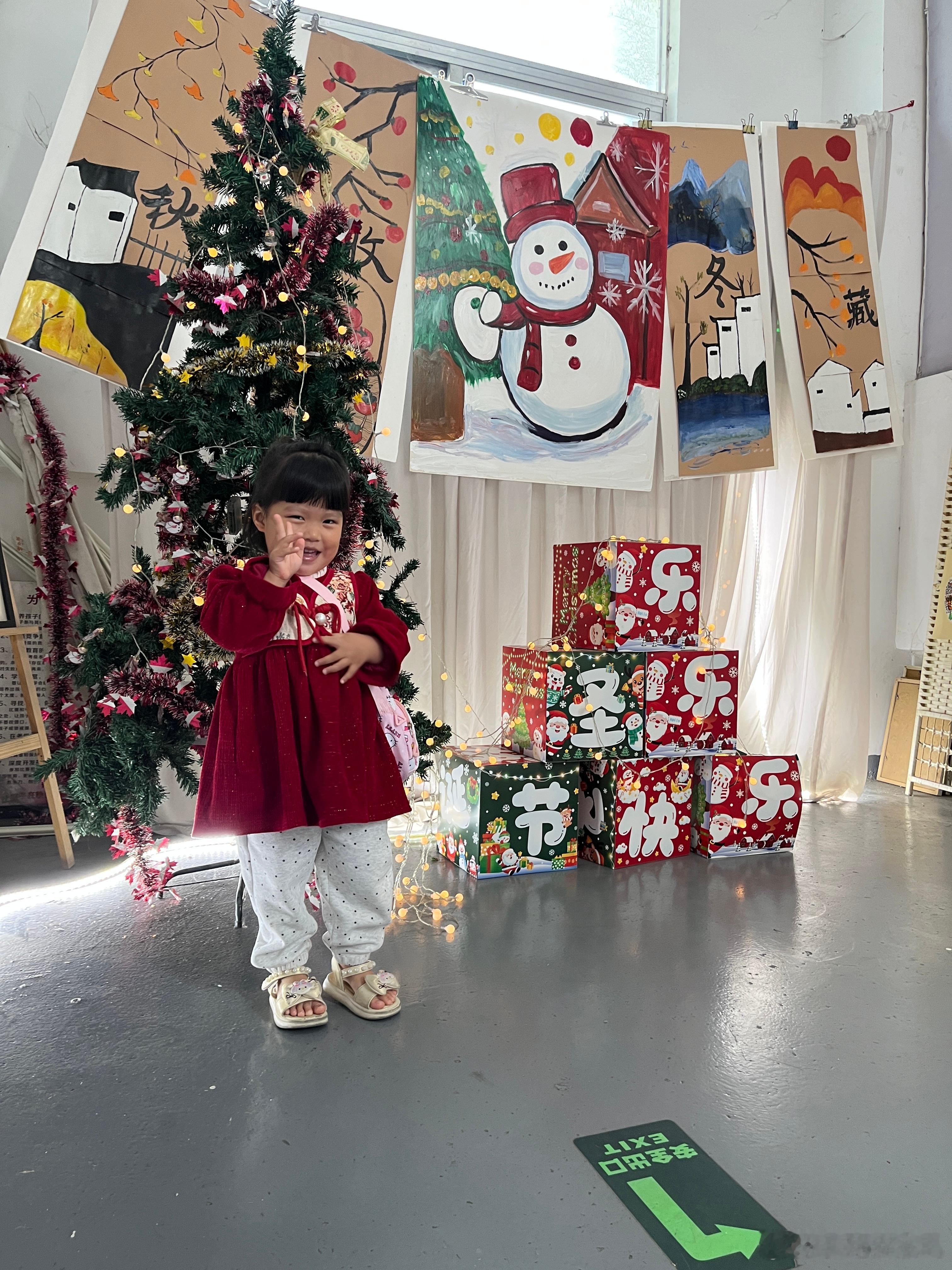 中午过来去接姐姐,看到圣诞节装扮,赶紧给她拍几张。结果她姐没来跳舞,请假了,她在看别的小朋友跳舞,看得都不愿意走。我问她以后要不要跳舞,她又说不要。
