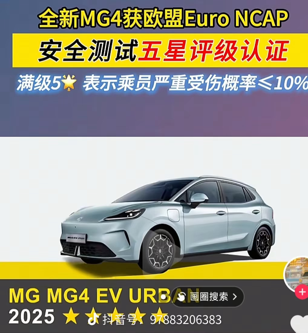 几万块的车,欧洲碰撞五颗星,应该还算可以吧mg4