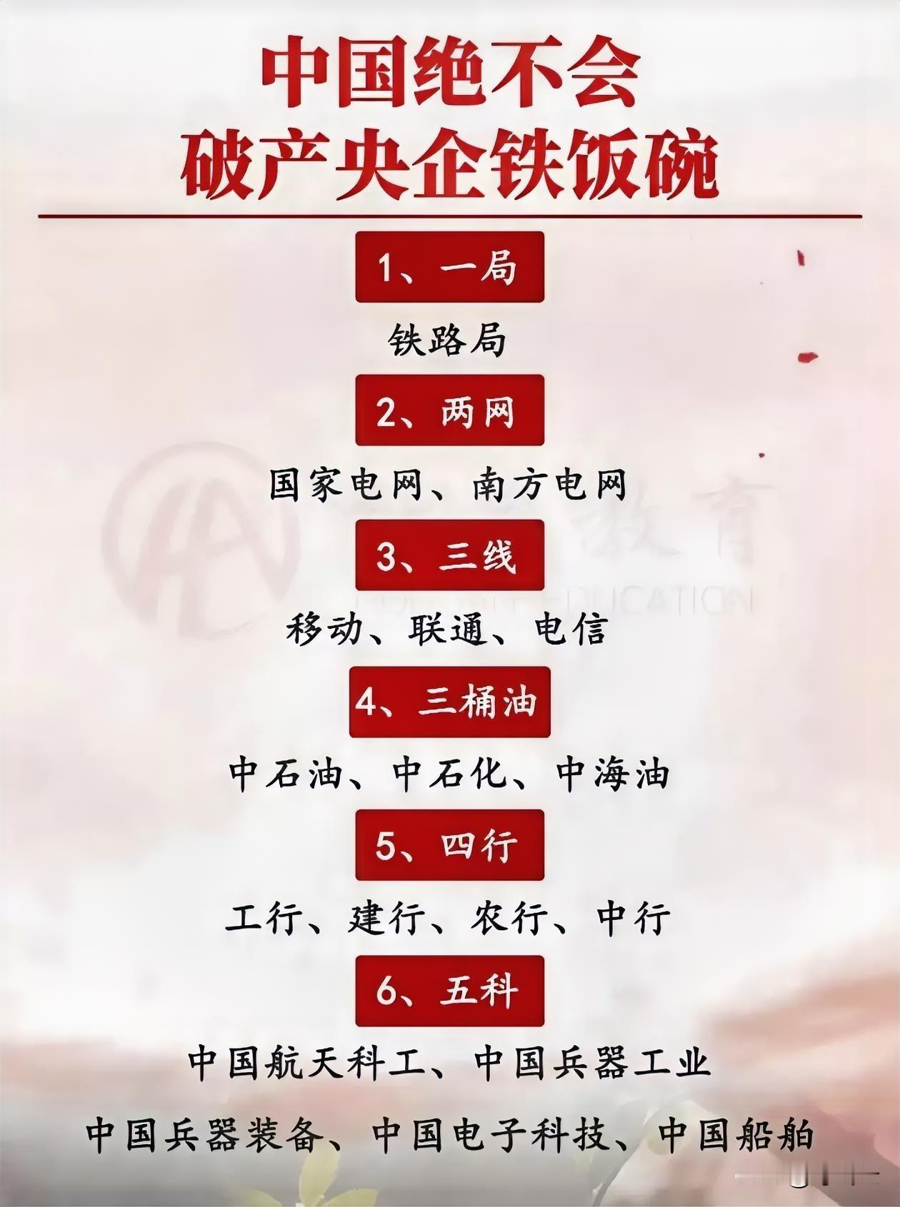 永不破产!这18家央企铁饭碗汇总揭秘!一图看懂,快快收藏!速速围观揭秘详细内容!这些企业包括:一局、两网、三运营商,三桶油,四行,五科等等。快快抓紧时间报名![点亮平安灯][点亮平安灯][给力][给力] 欢迎关注@叮咚云,将优先为粉丝职业规划指导,定制最适合的就业择业方案!欢迎留言交流讨论。[来看我][来看我] 免责声明:图片来自网络,仅供参考! 国企秋招 央国企招聘