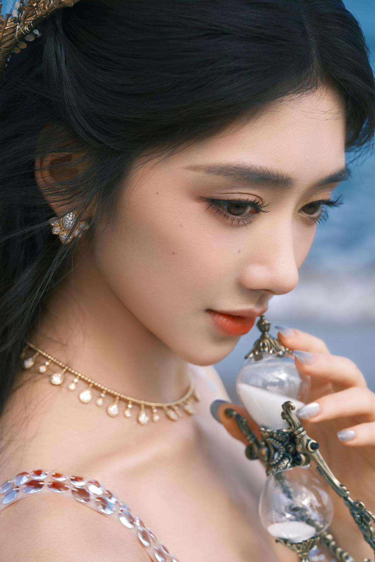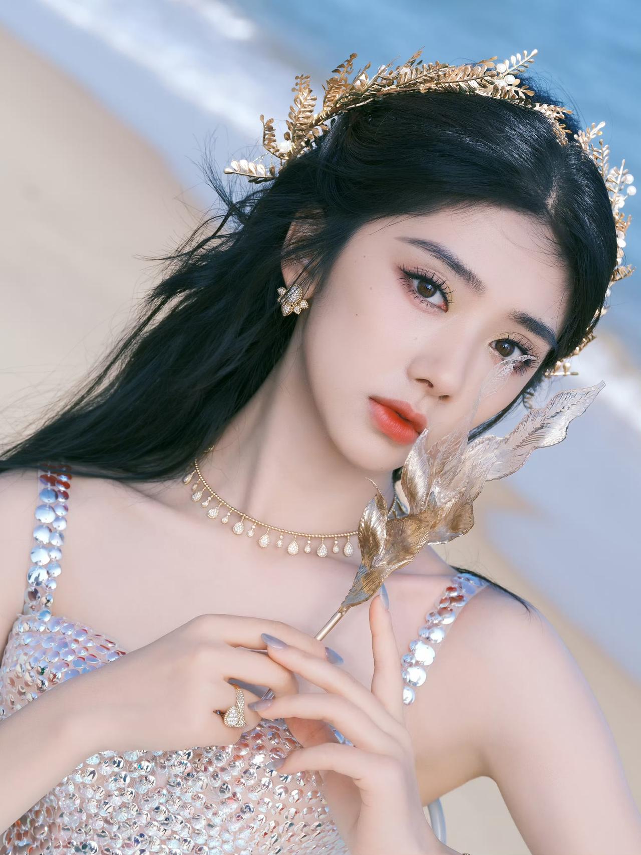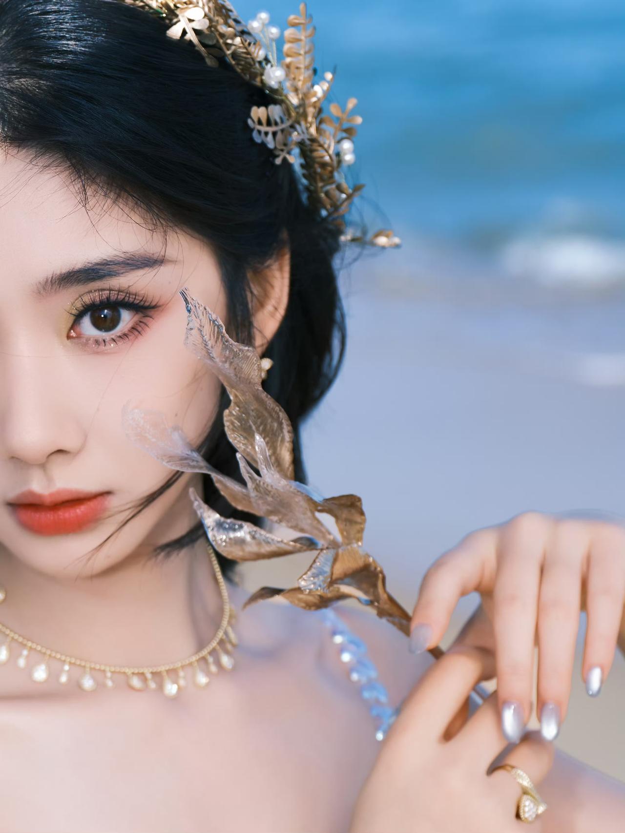 王影璐星光大赏造型,一袭珠光贝母裙像希腊女神一样。 月桂花冠的质感和她的妆容适配度极高,身上的裙子有贝母光泽,就像美少女战甲一般,既美又有力量感。 粉色的盔甲,和精致又不夸张的配饰,整个人都通透而优雅。