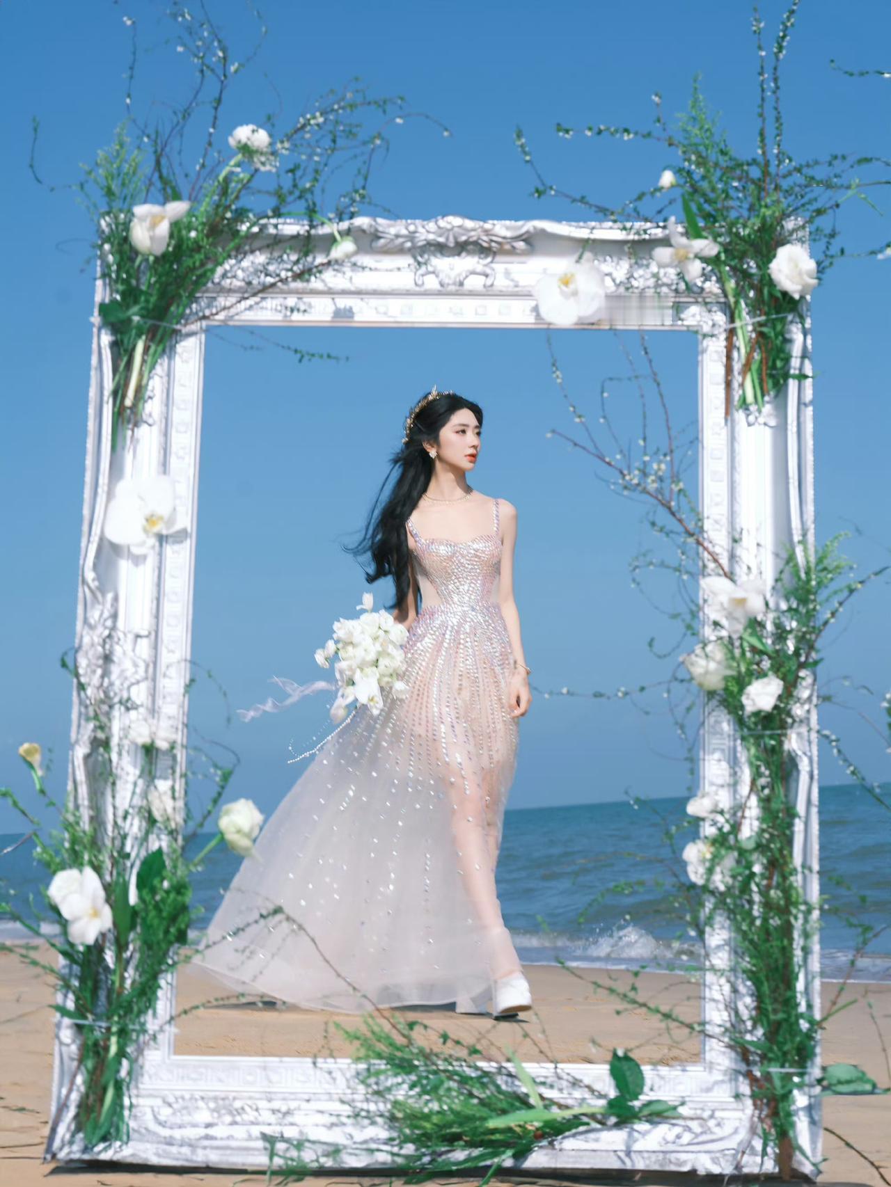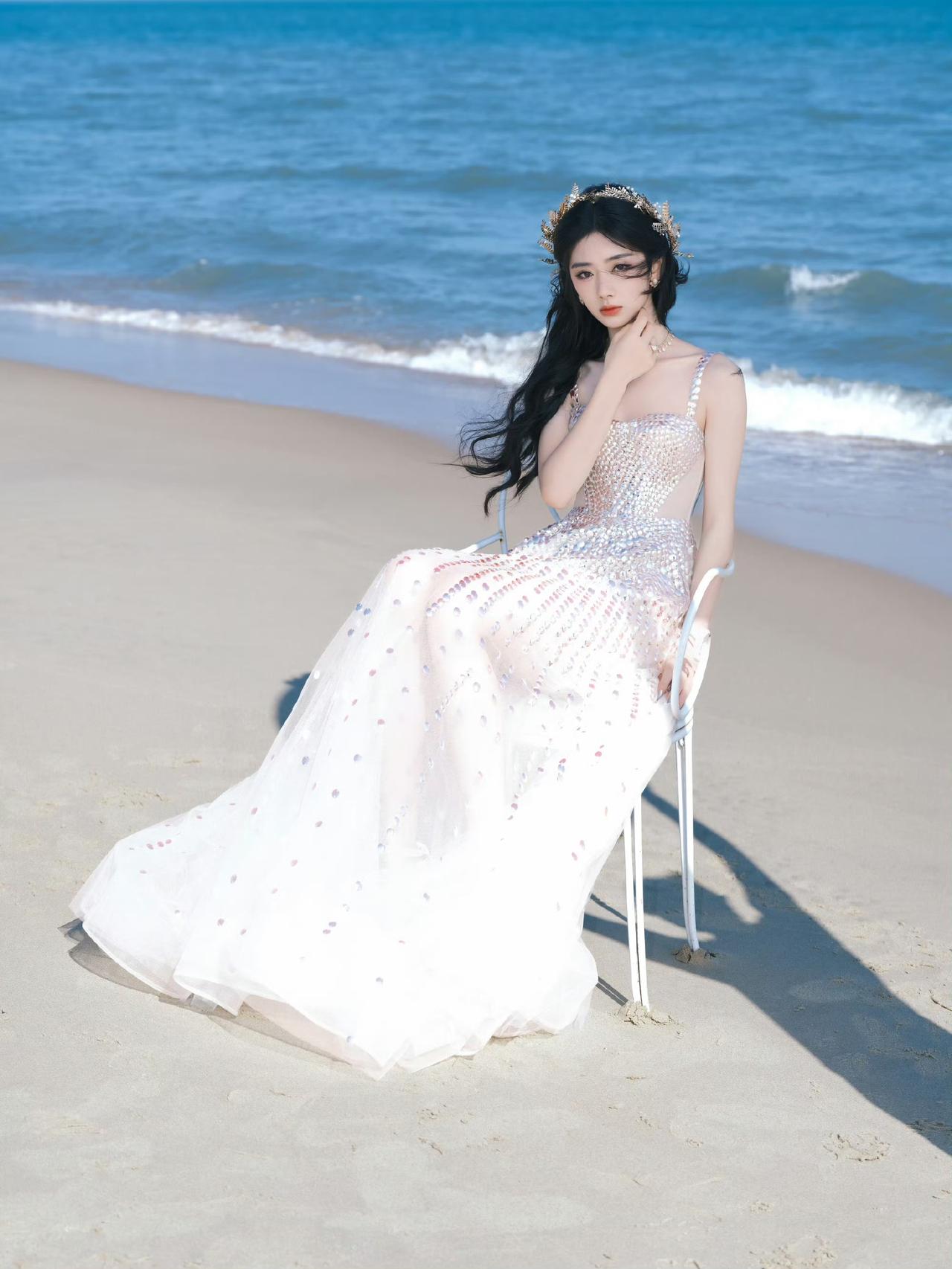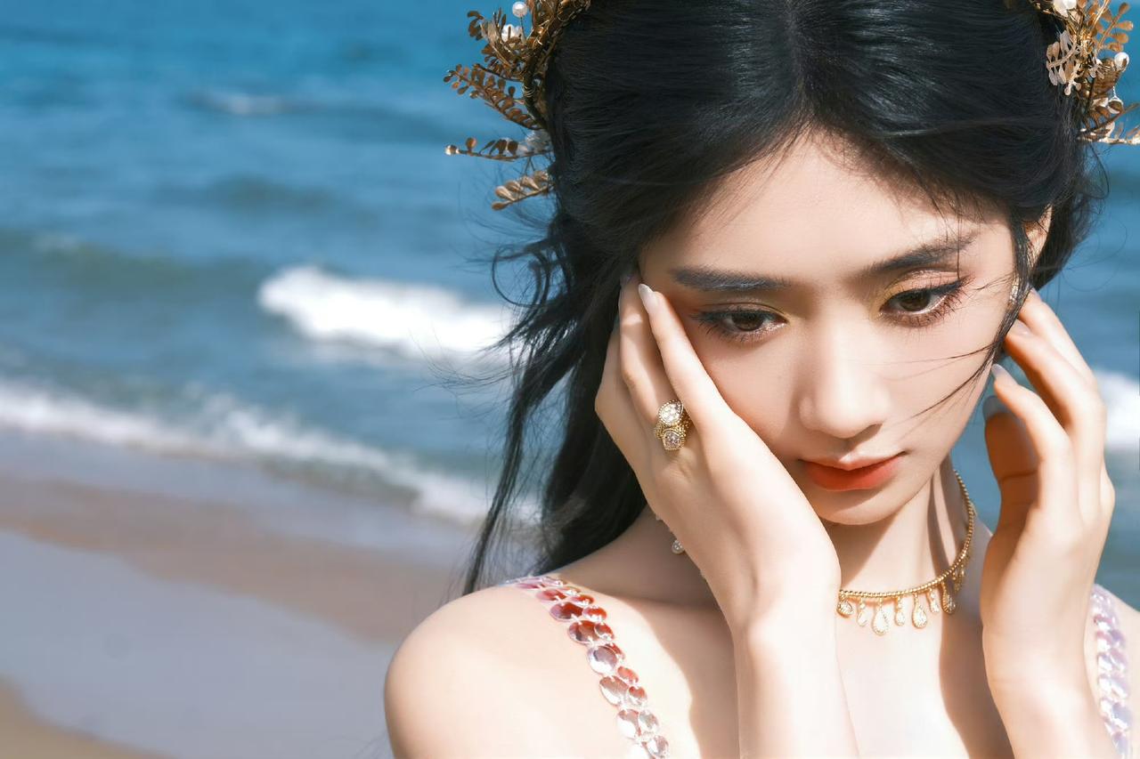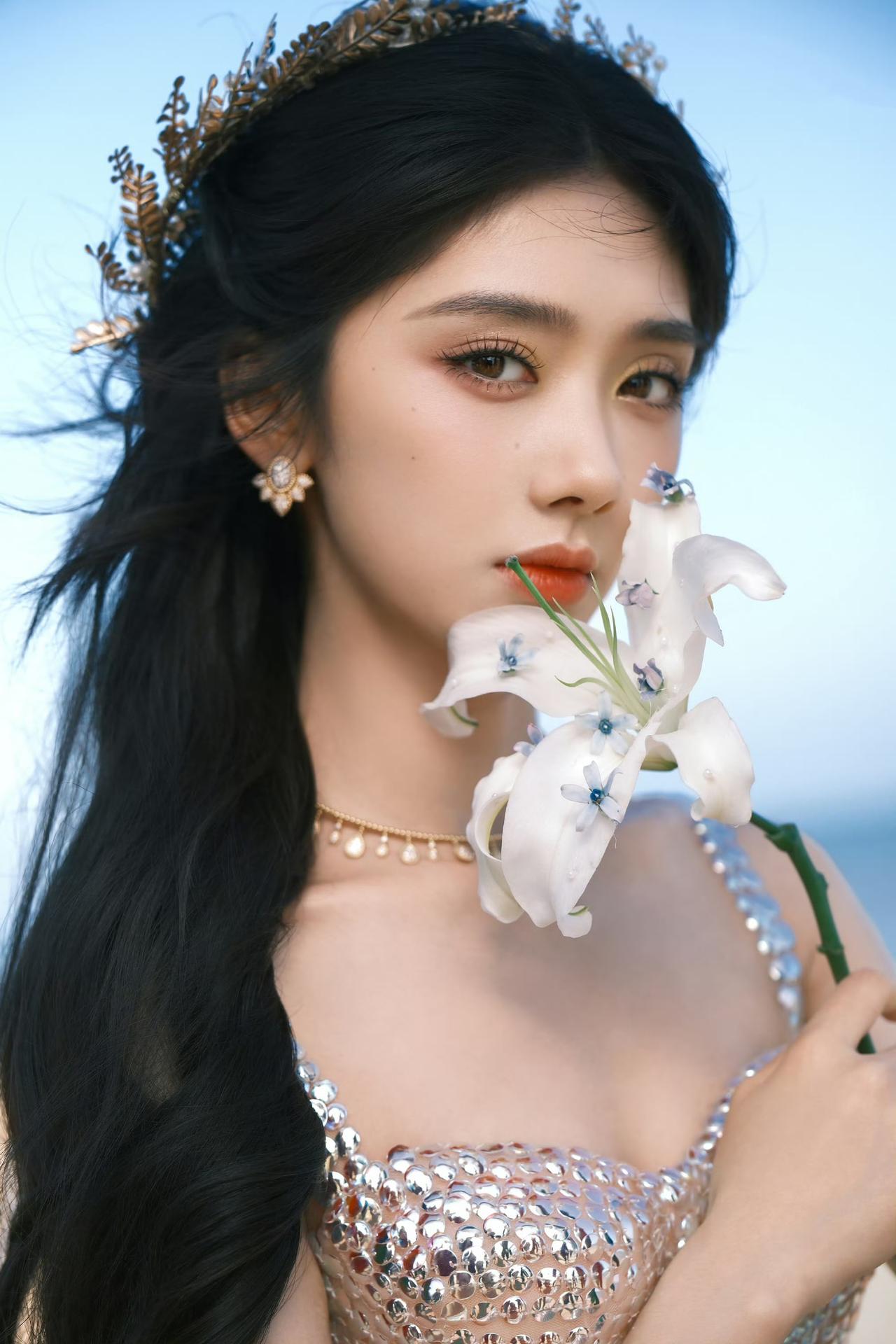王影璐星光大赏造型,一袭珠光贝母裙像希腊女神一样。 月桂花冠的质感和她的妆容适配度极高,身上的裙子有贝母光泽,就像美少女战甲一般,既美又有力量感。 粉色的盔甲,和精致又不夸张的配饰,整个人都通透而优雅。