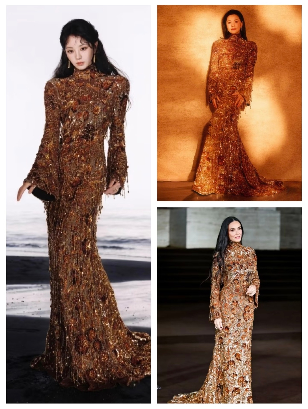 田曦薇咏梅撞衫感觉这衣服不适合田曦薇穿,田曦薇属于青春的气息,这个太成熟了,不是田曦薇的年龄段所穿的衣服!太成熟了,那就显得有点熟透了