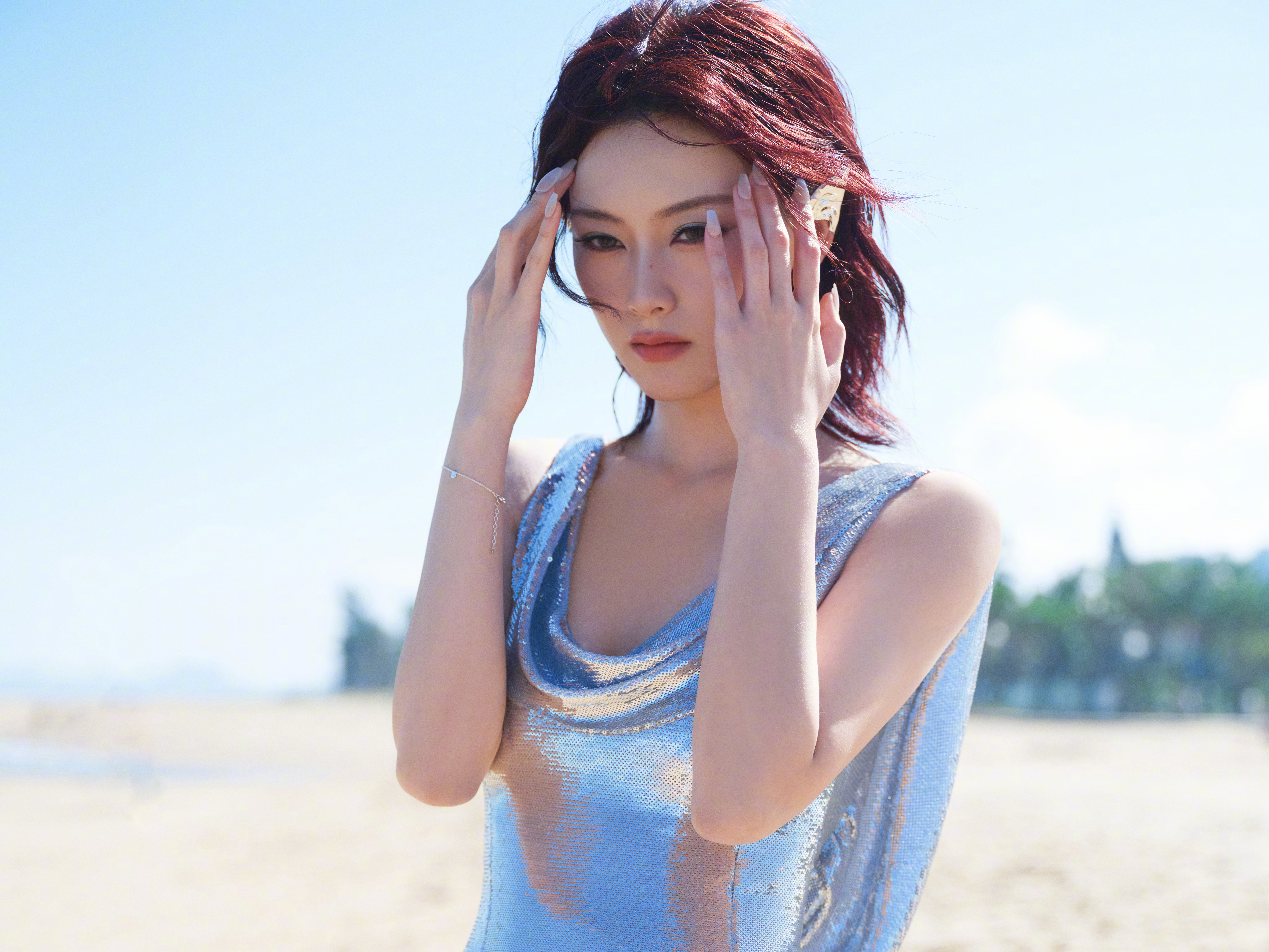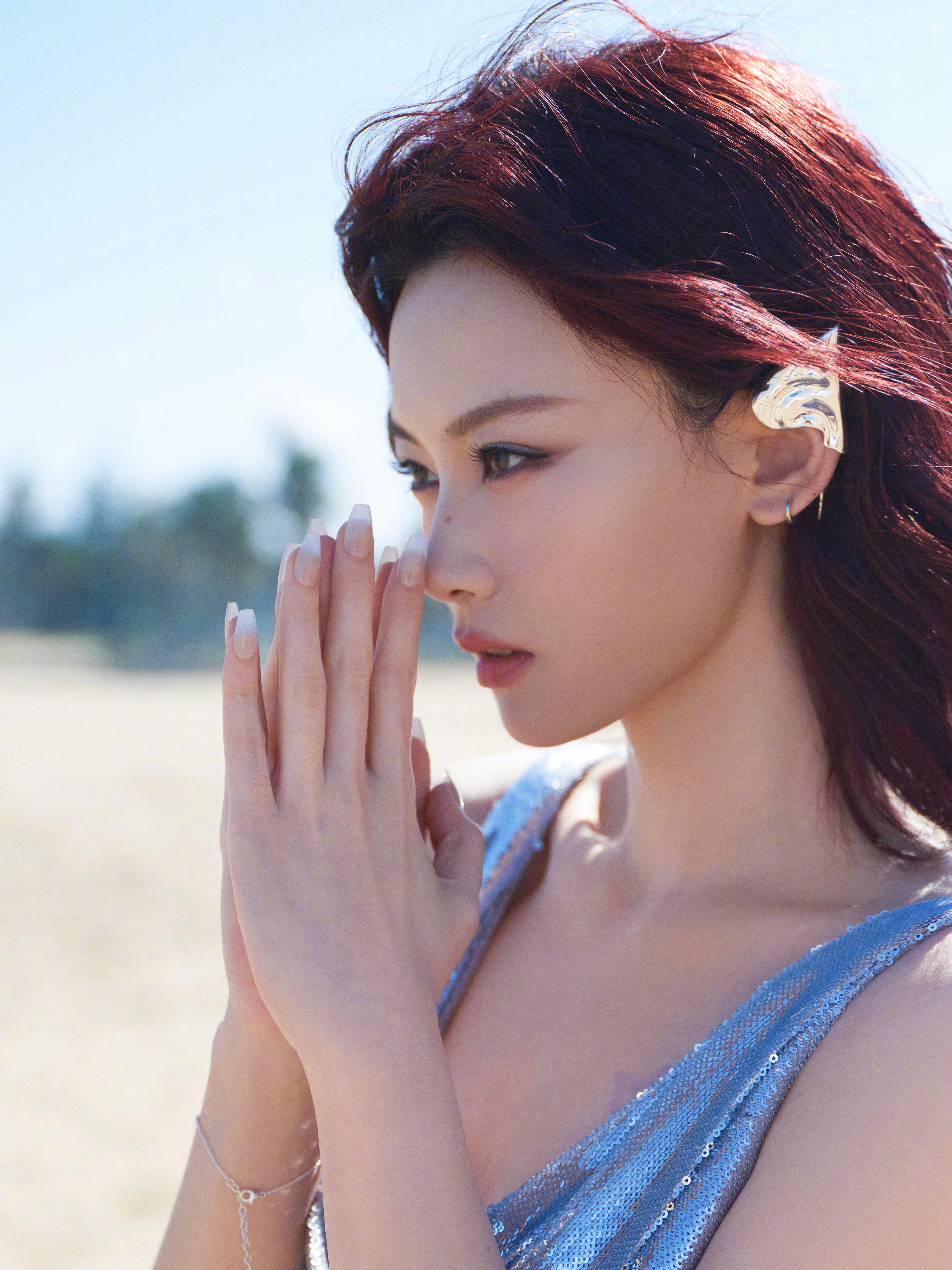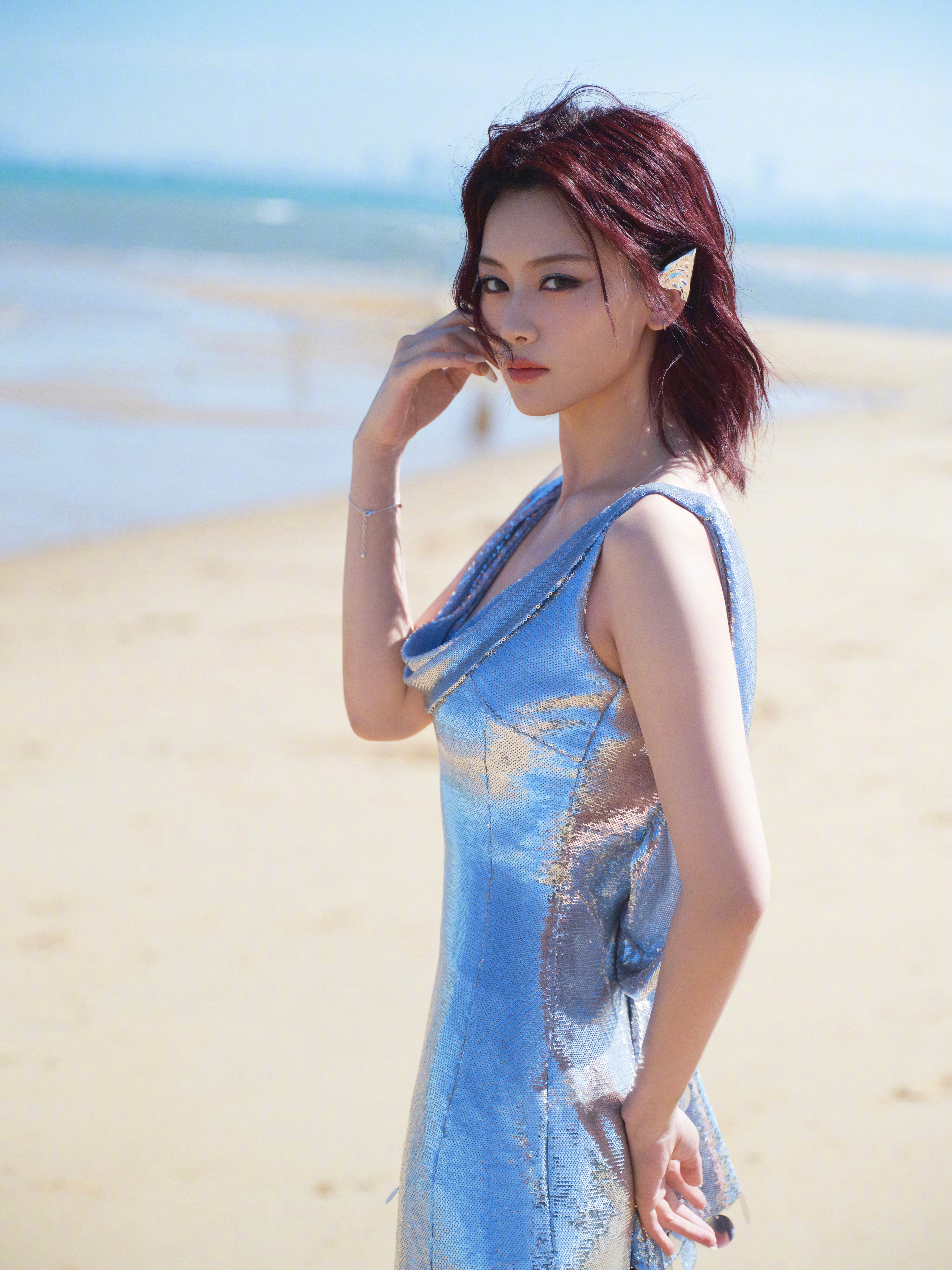 尚语贤 清冷海妖 尚语贤完全就是清冷海妖!你美得我呼吸一窒懂不懂!一身蓝色银光波点人鱼裙,在日光照耀下粼粼闪闪,而尚语贤一脸清冷,却在飘扬红发与眼神中透出一丝魅惑,是感觉与感觉的拉扯,谁懂哈,被美到了,一整个斯哈住!