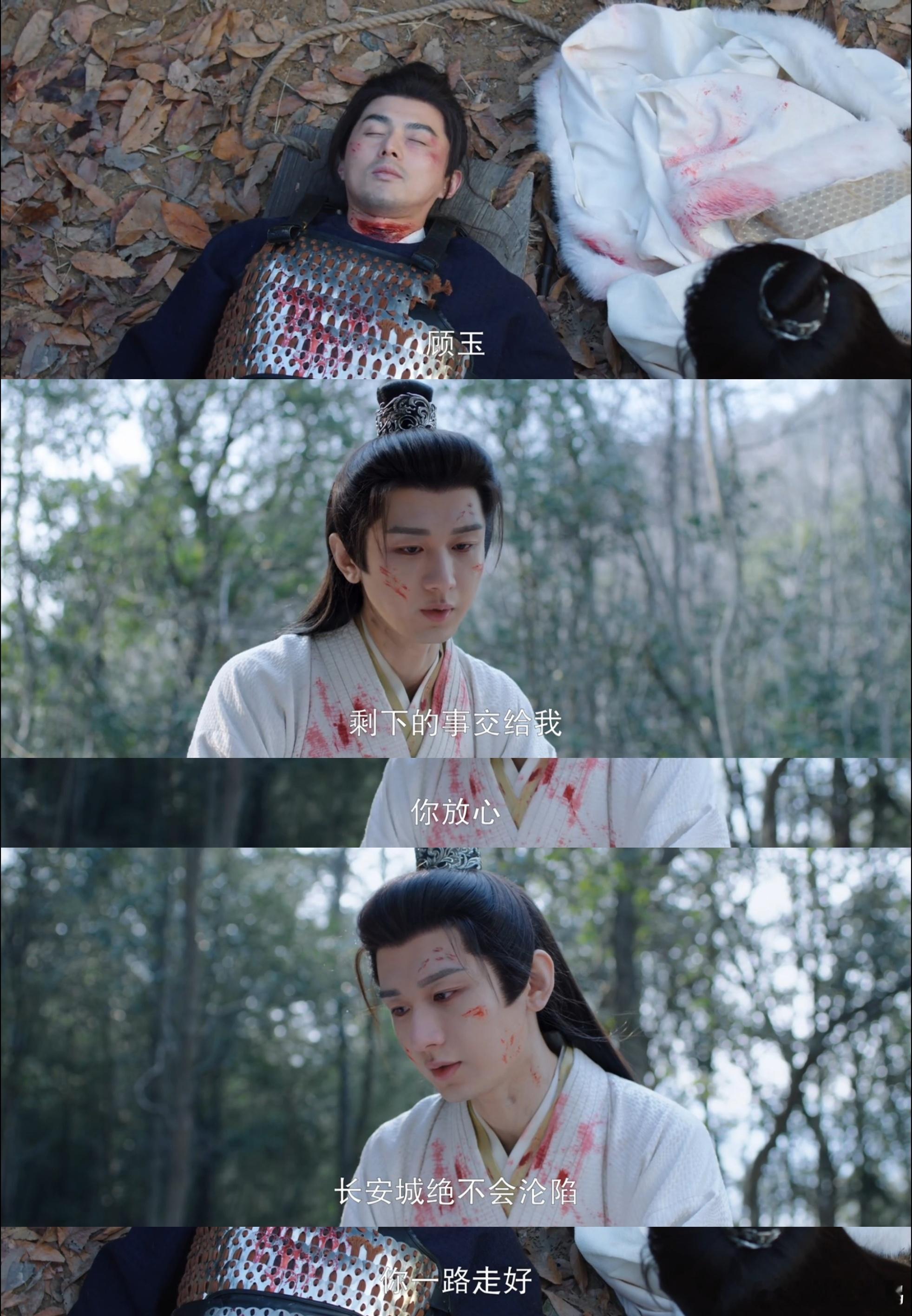 谢淮安给了顾玉最后的体面 谢淮安在荒地寻到顾玉,沉默又固执地将这位少年战神从泥泞中拖起,小心安置,满是无声的敬意!