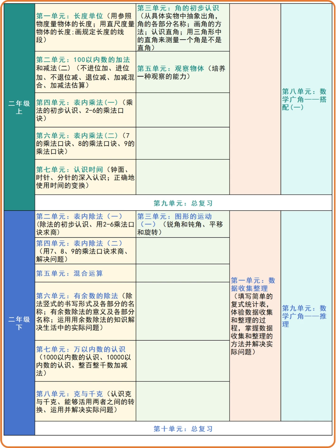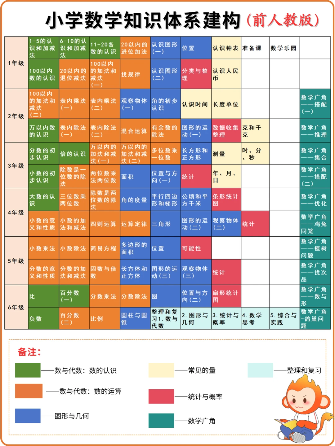 2024年秋季新人教版小学数学教材发生了部分内容变动,但整体的学习进程没怎么变化,可以参考之前1-6年级知识点分类表