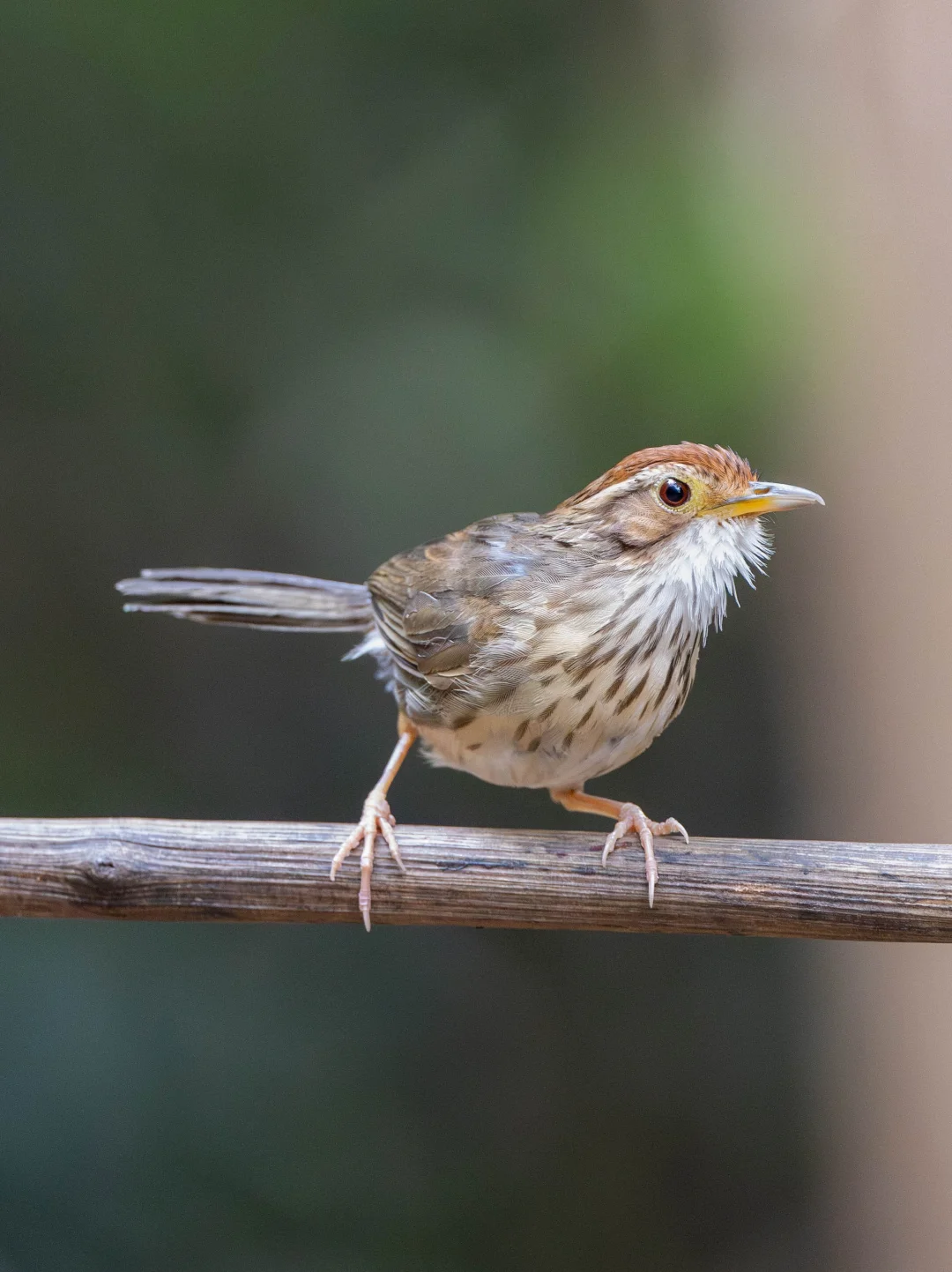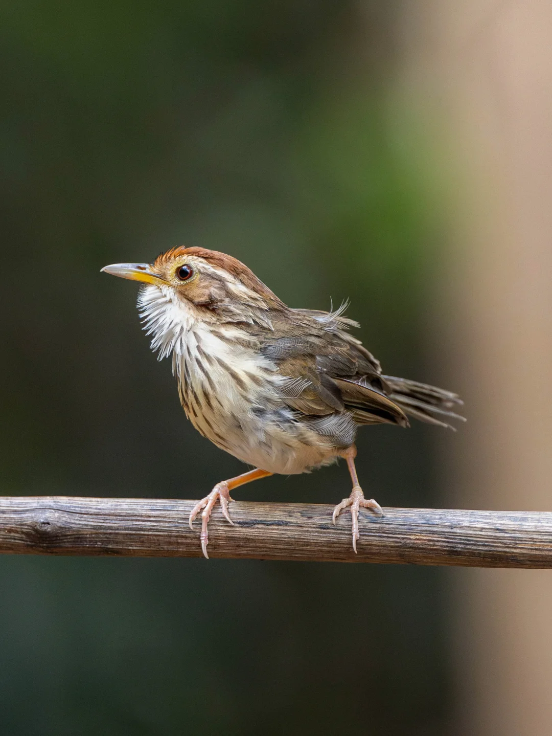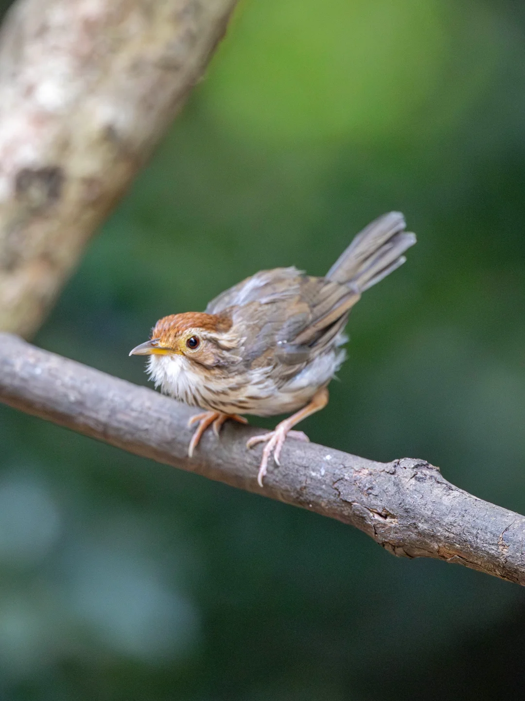 喉部白毛蓬松的棕头幽鹛