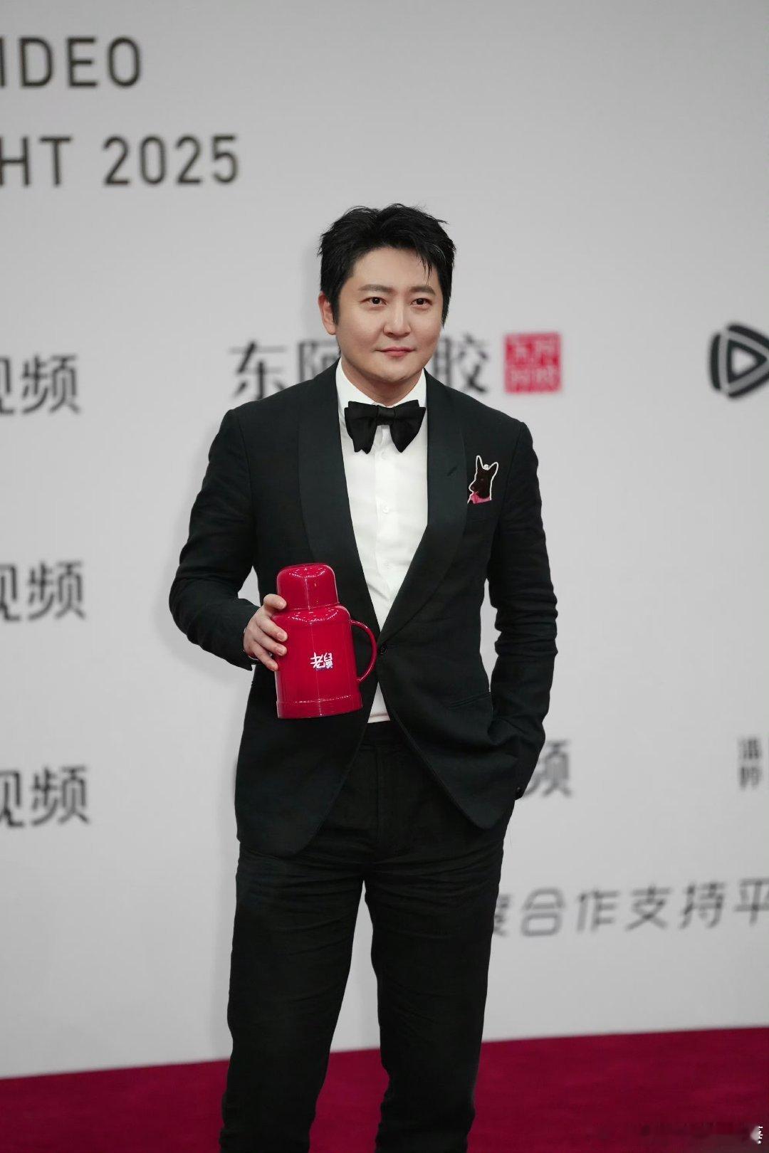 郭京飞左手驻站右手老舅一身黑西装把郭京飞衬得又高又直,气质完全在线,结果他偏偏要左手拎红水壶,右肩挂依卡,硬生生把颁奖礼走成了角色见面会,这波操作太有创意了。