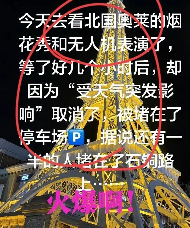 【无人机表演取消,奥莱】昨天由于天气原因,北国奥莱的无人机表演活动取消了!昨天想去北国奥莱看无人机表演的朋友是真不少!好多盆友已经到了,还有的网友堵在了石铜路上! 估计是5点多就在群里发通知了,说活动取消了!不过还是有许多想去的人,没有得到通知,到了现场,才发现由于天气原因,无人机表演取消了! 好多网友,发视频开始吐槽模式!有的说,满怀希望带孩子去了,结果转的时候突然广播起来,今晚烟花取消!回家吧!在停车场足足等了一小时悲哀!冻死人,啥也没看成!其实主办方也是为了大家的安全考虑,绝对不是为了扫大家的兴! 各位盆友,下次可以直播间看吧,记得有个视频账号在直播!足不出户,可以全程无亖角的观看,还能下单购物,何乐而不为呢! 石家庄一座有温度的城市! 做一名有温度的石家庄人! 信息图片来源网络侵权联删