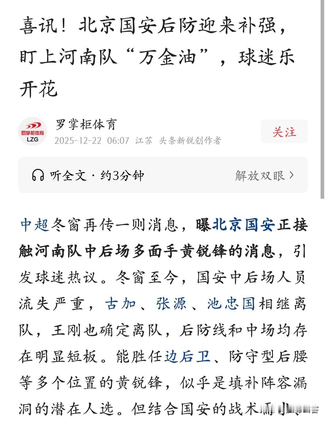 国安想引进黄锐烽,做梦去吧! 最近有体育博主爆料北京国安欲引进黄锐烽,并且已经进入实质性接触之中,乍听这条消息非常应景,毕竟人家的财力和能力都在河南队之上,但是不要忘了黄锐烽和河南队还有合同在身,加上是主教练拉莫斯战术体系中重要一环,国安即便想强行挖走,那也得付一笔价格不菲的“转会费”,不过现在的国安今非昔比,已不是当初罗宁担任总经理时那样“财大气粗”,他们目前急需解决的是尽快通过中足联审核,确保顺利出现在第二批完成清欠名单之中。 至于黄锐烽,他在南基一时代的确实踢的“窝囊”,屡屡失误甚至一度被标为水货标签,但是在拉莫斯接手后将他放在左后卫的位置,解放了他的进攻属性,也让他成为球队中不可或缺的球员,如今的他在河南队愈发自信,如鱼得水,相信好不容易碰上“伯乐”的他不会这么轻率的更换门庭,再次踏上不可预知的冒险之路。 上赛季一些体育博主不断爆出钟义浩要加盟泰山的信息,最后证明纯粹是博人眼球胡说八道,而这次爆出的黄锐烽前往国安则是更无底线,满嘴胡沁![发怒][发怒][发怒]